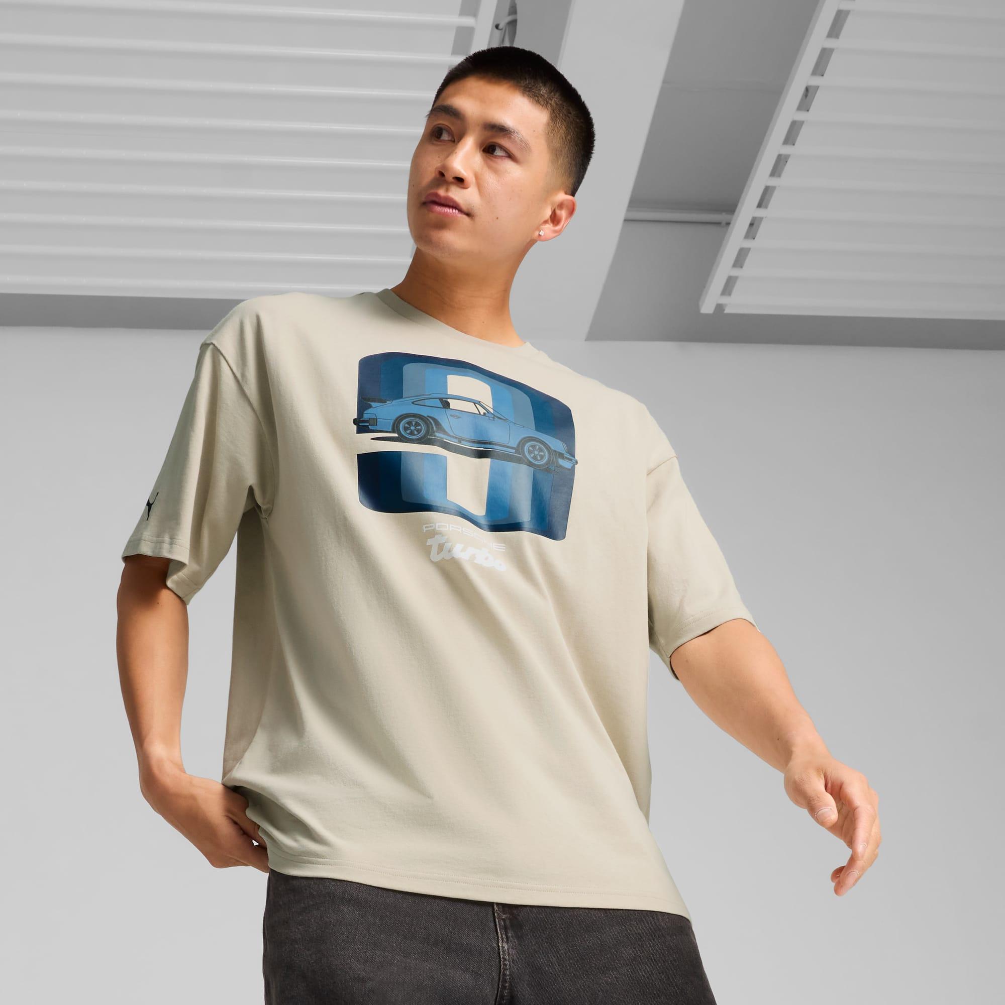 Hit the road in style wearing this bold graphic tee inspired by Porsche's iconic 911 Turbo. Accelerate your casual looks with a striking seasonal graphic, oversized fit, and PUMA Cat on the sleeve. Display your passion for high performance wherever the open road takes you.Made with at least 20% recycled cottonOversized fit, regular length210 gsm, single jerseyCrew neckShort sleevesLarge Porsche Turbo seasonal graphic on the centre frontPUMA Cat on the right sleeve