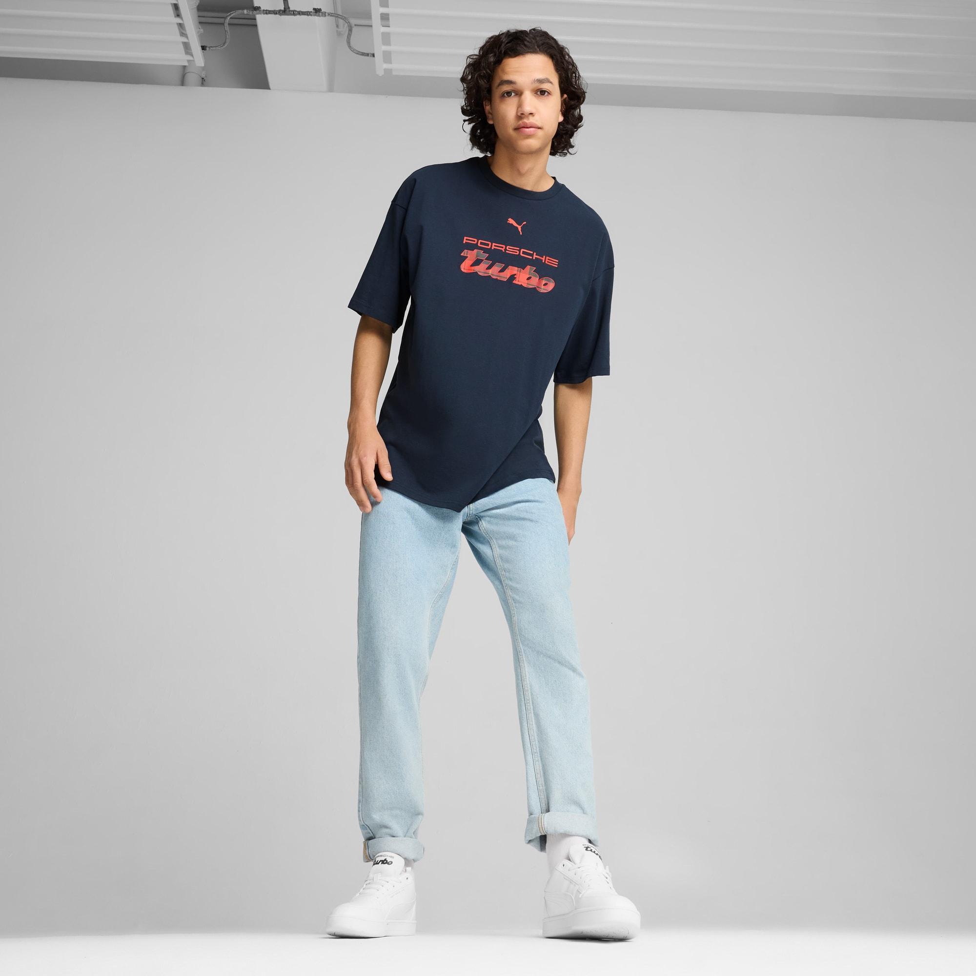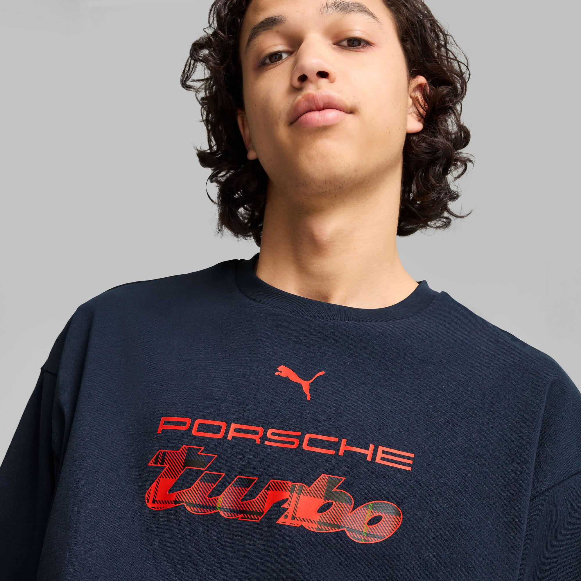 Make a motorsport statement in this Porsche Legacy Statement Logo tee. With an oversized fit and tartan details inspired by racing legend Louise Piëch, this oversized shirt lets you rep your passion for performance on the streets. Accelerate your style.Made with at least 20% recycled cottonOversized fit, regular length210 gsm, single jerseyCrew neckShort sleevesPorsche Legacy Statement graphic inspired in Louise PiëchPUMA branding details