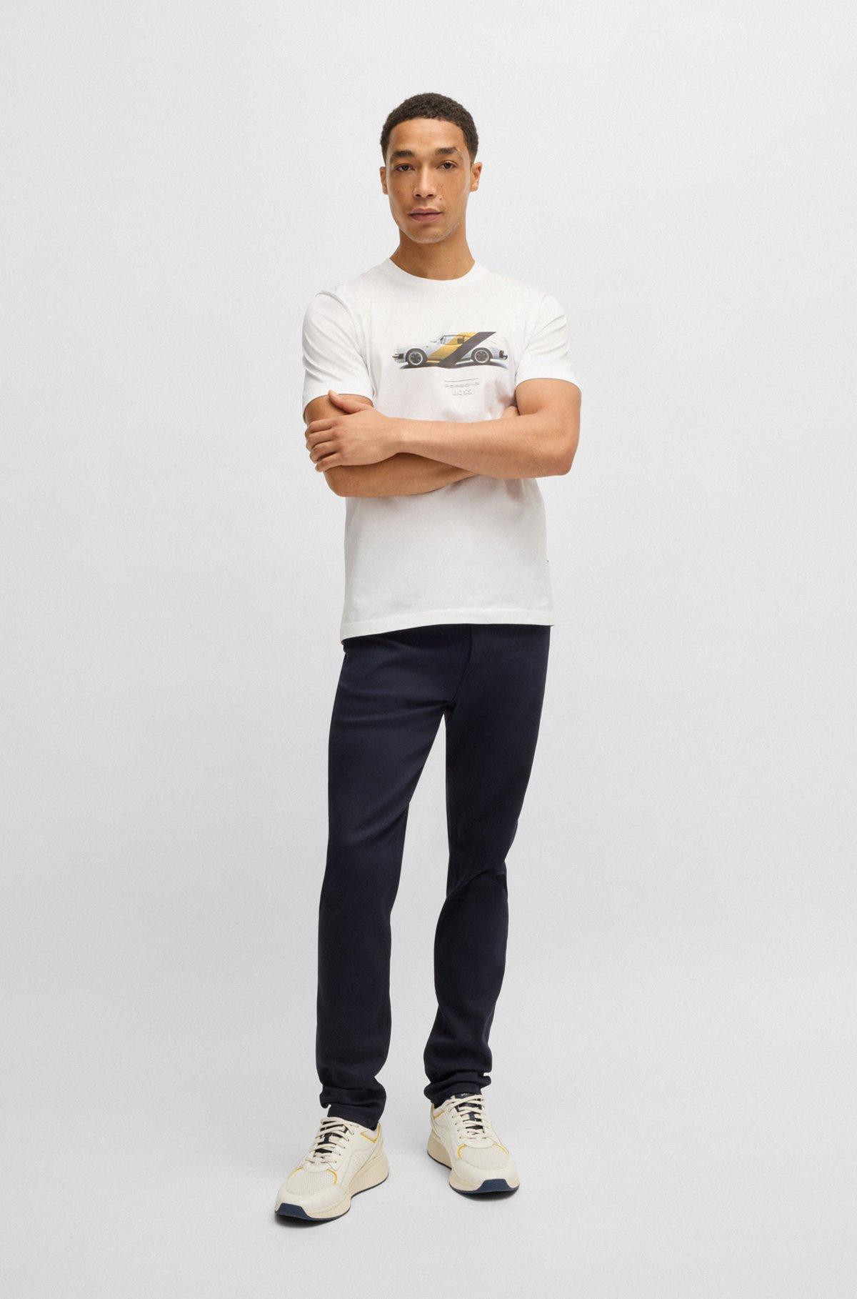 In extra-soft jersey, this regular-fit men's Porsche x BOSS T-shirt is available with car artwork or a collaborative logo. Side-seam flag. Part of the Porsche x BOSS capsule, a collection of bold styles that captures the BOSS attitude of drive and determination.