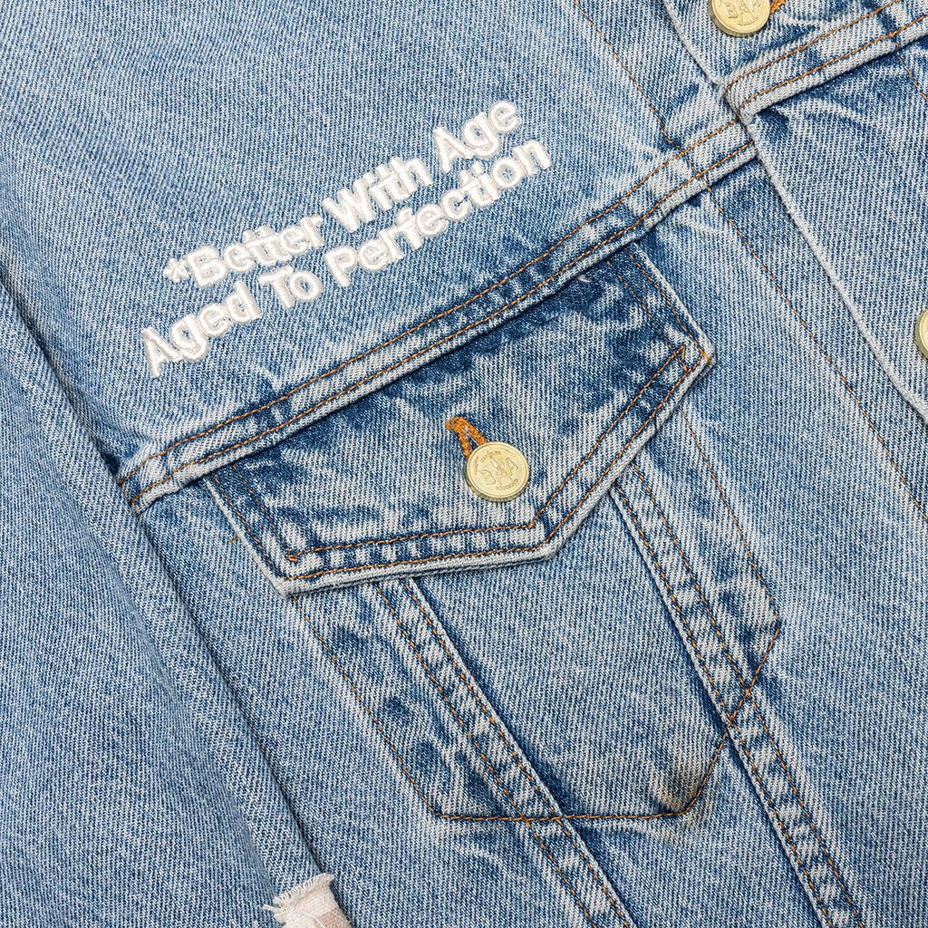 The Portrait Denim Jacket in Multi is crafted from cotton and features distressed detailing alongside bold brand embroidery. The jacket's standout patchwork and portrait design adds a creative, artistic touch. It has a classic button-up closure and is made from unique, hand-picked vintage denim by BWA. Due to the nature of the materials, each jacket is one-of-a-kind, with product photos serving as examples. Signs of age, such as stains, blemishes, or wear, may be present, reflecting the garment’s vintage origins. Additionally, each piece has been measured and resized to accommodate any size variances due to its vintage nature. THIS PRODUCT DOES NOT QUALIFY FOR DISCOUNTS OR SPECIAL PROMOTIONS, ALL SALES ARE FINAL. 100% Cotton Distressed detailing with brand embroidery Patchwork and portrait design Button-up closure This garment has been measured and resized to account for size variance due to age. Style No:BWADJPOR-MUL-7