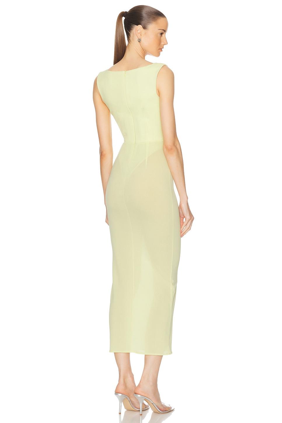 dressPolyester textile / Imported / Dry clean recommended / Attached gusset lining with gusset snap button closure and thong back / Hidden back zipper closure / Crepe jersey fabric / Please note: Garment is made with a semi-sheer fabric, undergarments can show through / Our Style No. APEF-WD177 / Manufacturer Style No. D1350FW24 / Model is wearing size US 2/ UK 6