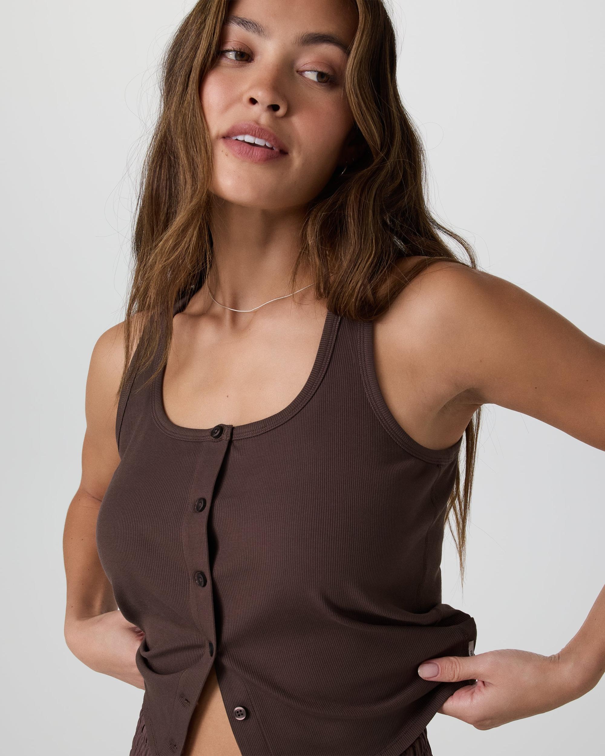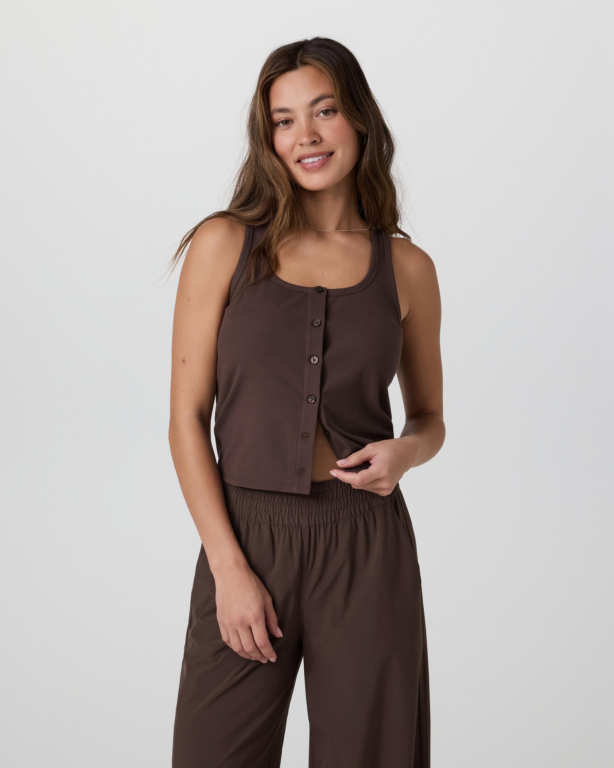 Made with our easy-to-love stretch rib knit, the Pose Cardigan Tank in Java is perfect to wear solo or layered over your favorite Vuori tops. Shop now.