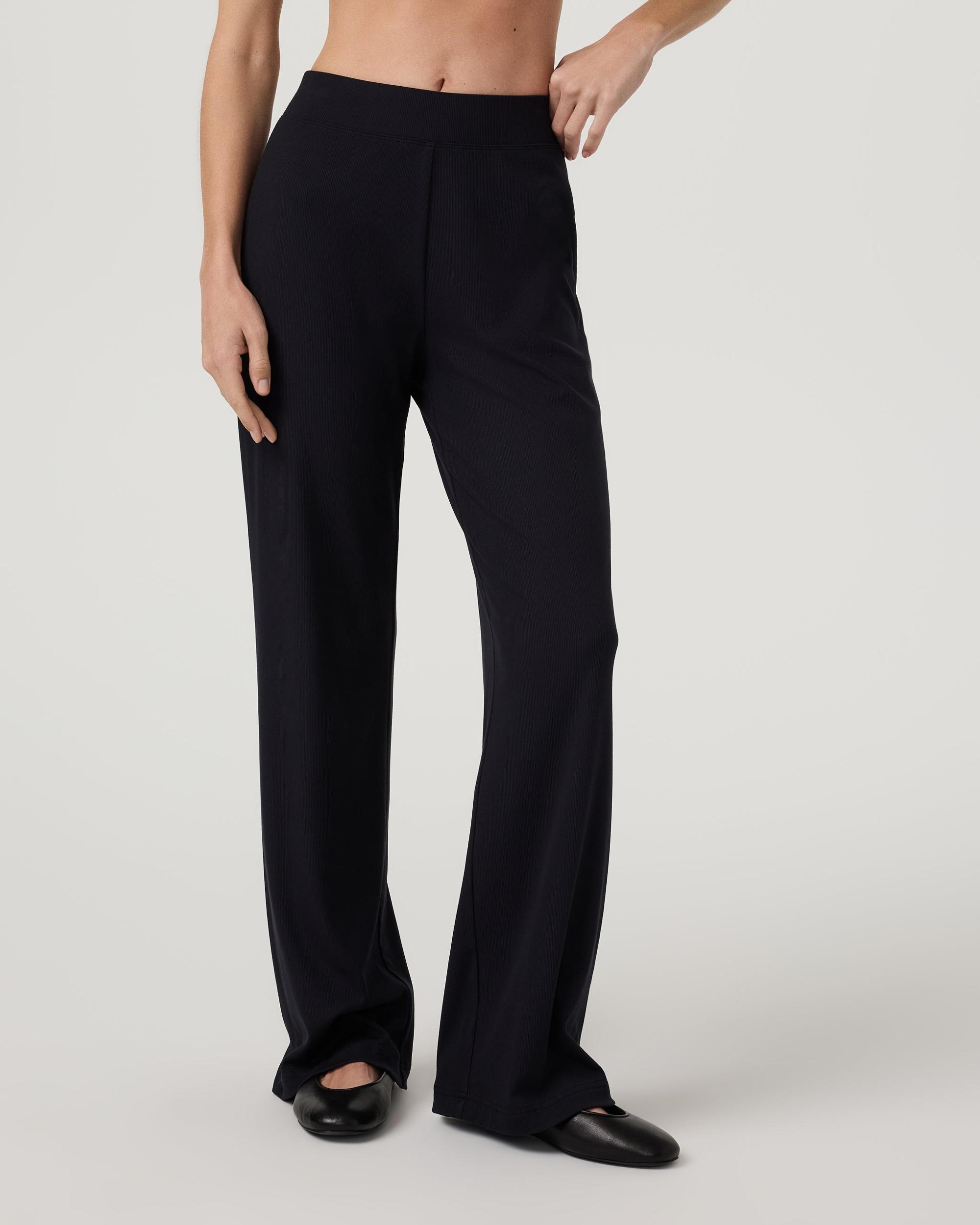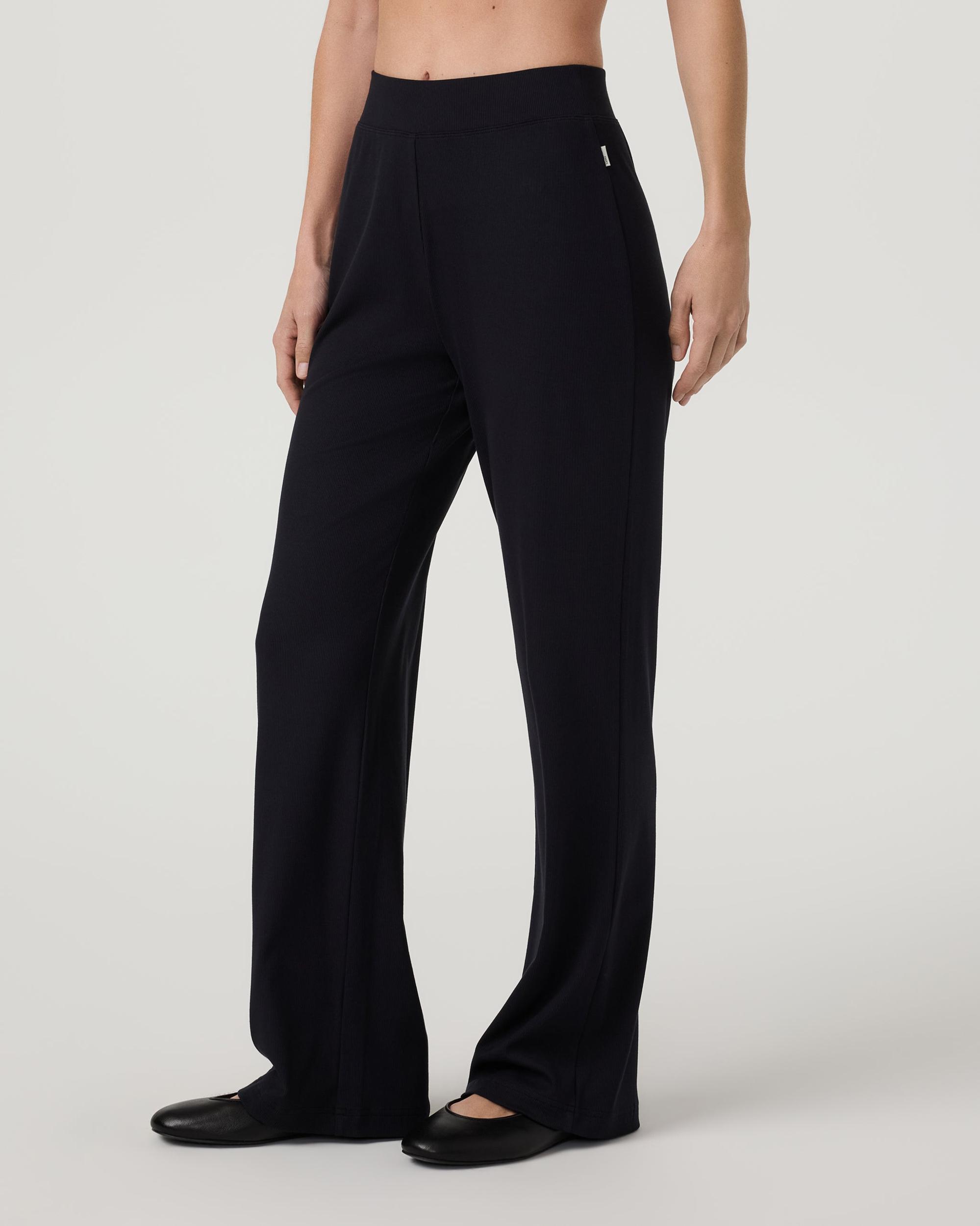 The Pose Pant is an ultra-comfortable pant with a relaxed fit, straight leg, and high-rise waistband. Shop these women's Black ribbed pants from Vuori.