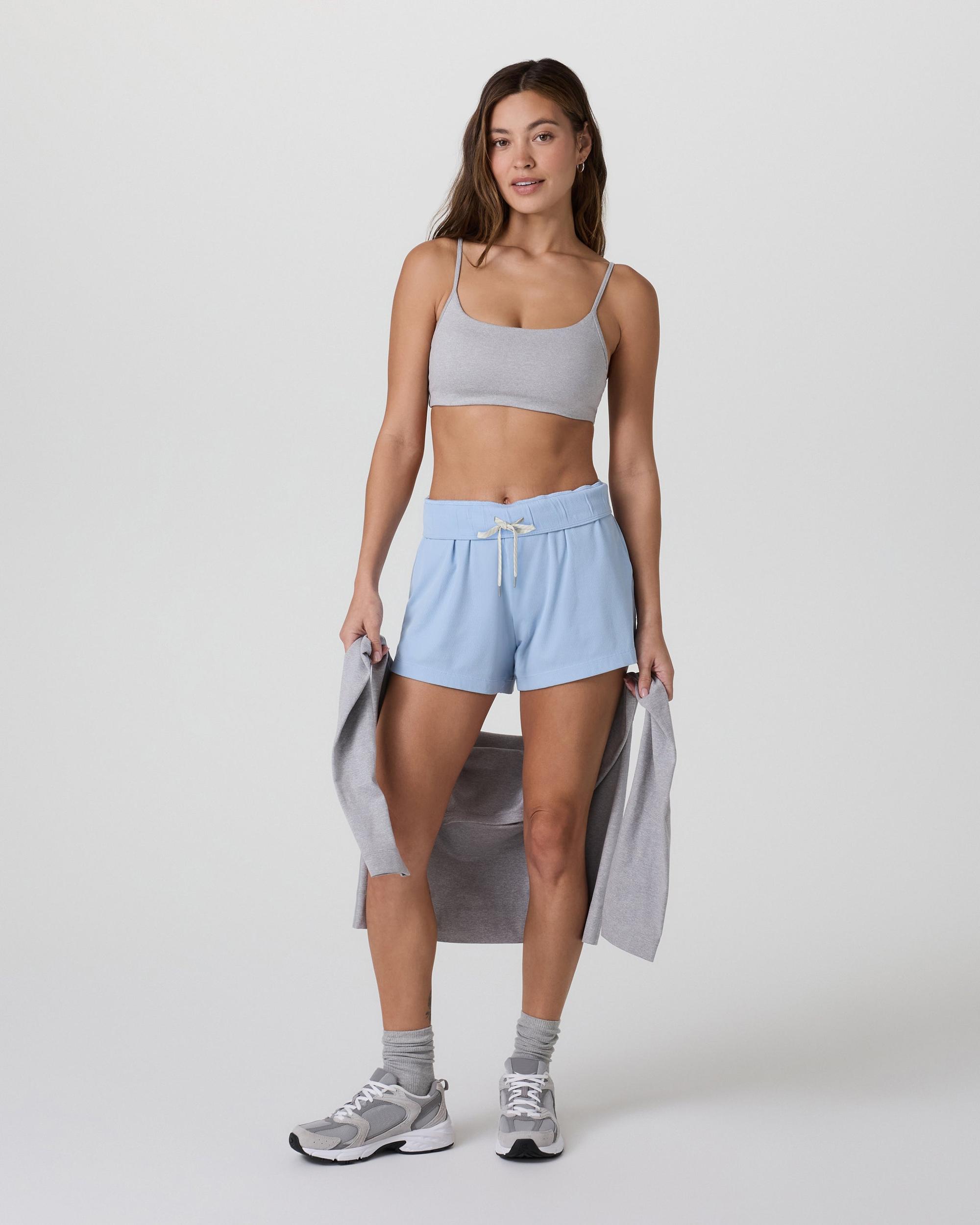 We love the fit and feel of our stretch rib knit, especially in the Pose Short in Surf. Shop these women's rib knit shorts from Vuori.