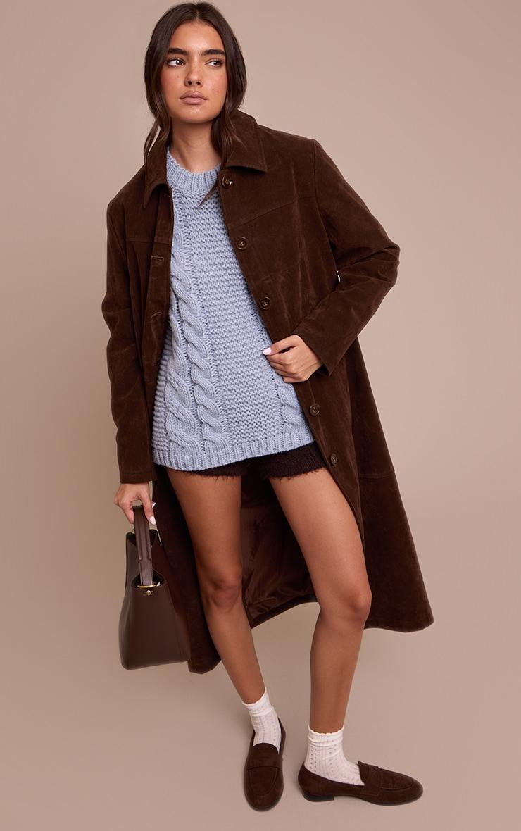 Own your chill-day aesthetic with a piece that speaks volumes. This powder blue cable knit sweater anchors any elevated day look with its inviting tone and relaxed silhouette. The classic crew neckline frames the face, while the generous long sleeves and body are defined by a visually impactful cable knit pattern that adds depth and interest. Ground this artfully constructed piece with sharp tailored pants for a balanced contrast, then add the confident stride of knee high boots. Complete the ensemble with subtle pearl earrings to elevate the overall presence, mastering effortless style, even when wrapped in comfort.Length approx 48.5cm/19inch (Based on sample size S)Model wears size SModel Height - 5ft 7inchp]:!mb-4inch>Category: KnitwearProduct type: SweaterColor: Powder BlueMaterial: Cable KnitOccasion: Day