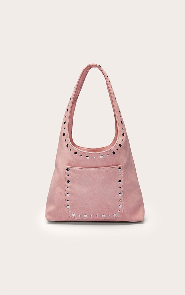 Complete your accessories edit with the powder pink faux suede studded shoulder bag. Crafted in faux suede with a powder pink hue, it’s detailed with metallic stud accents and a structured silhouette. Wear with casual denim or tonal tailoring for a playful statement. Approx Height: 34cm/13.5inch Approx Width: 39.5cm/15.5inch Approx Depth: 5cm/2inchp]:!mb-4inch>Brand: PrettyLittleThingCategory: AccessoriesProduct type: Shoulder BagColor: Power PinkMaterial: Faux SuedeOccasion: Day