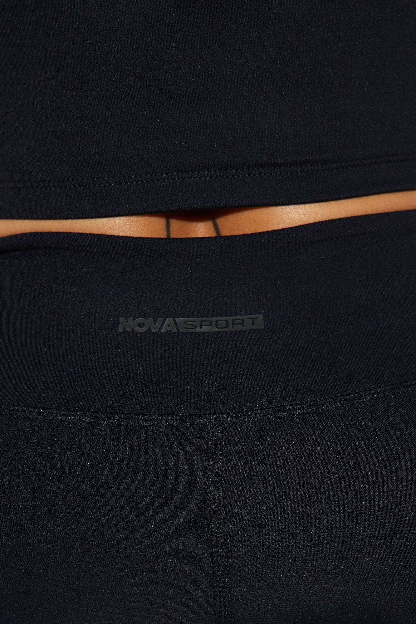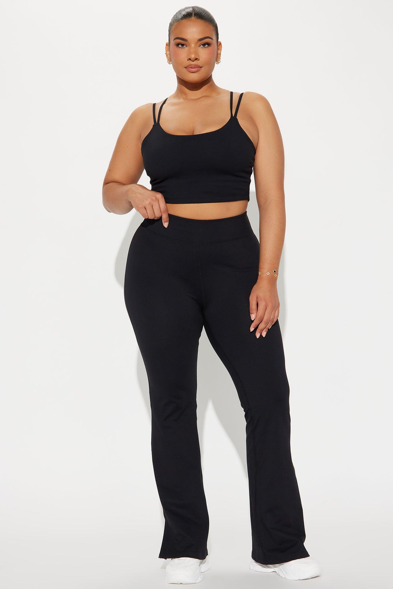 Available In Black And Emerald. Active Yoga Pant High Waisted Elastic Waistband Super Soft Slit Detail Medium Impact Stretch Pair With "Power Flow Super Soft Sports Bra" 77% Polyester 23% Spandex Imported