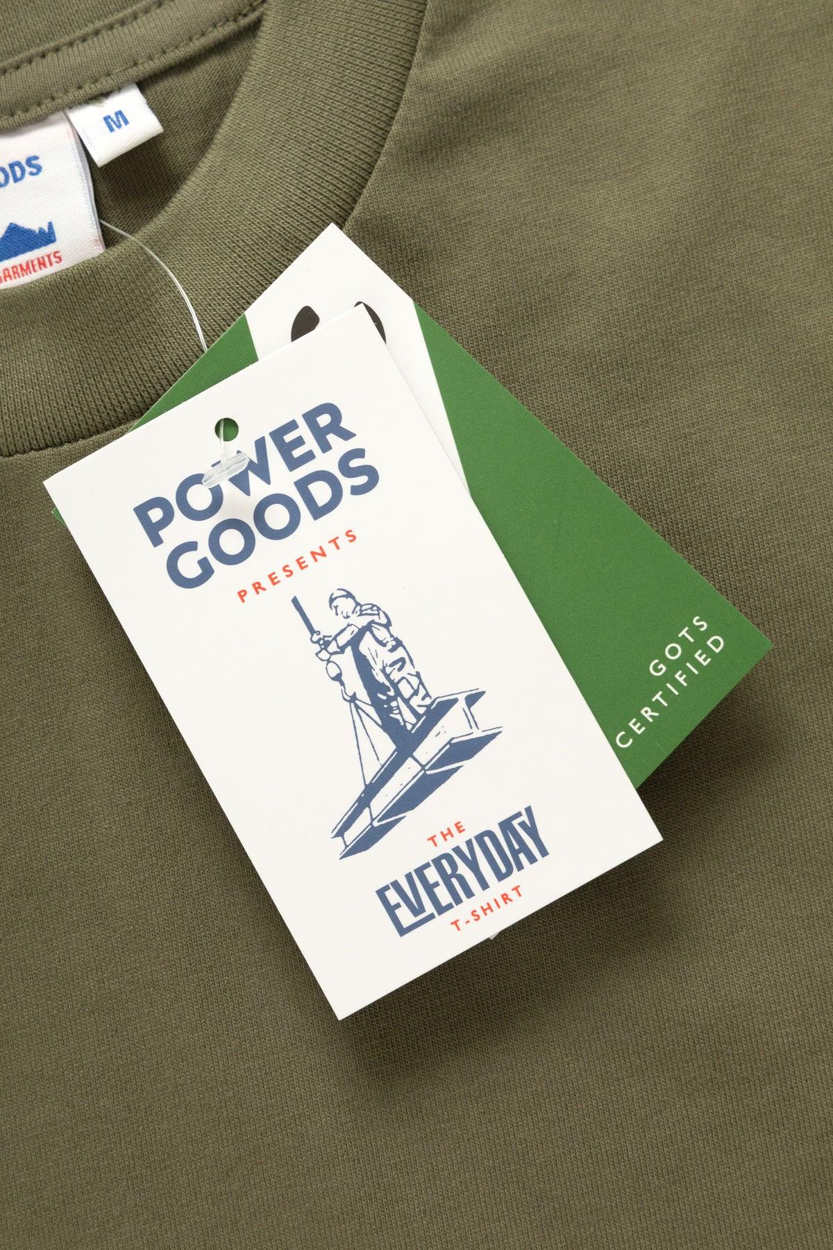 Everyday tee by Power Goods, Organic, 7.5oz cotton, GOTS certified, Not too boxy, not too slim. Built for all seasons and occasions. Heavy-duty, "stay-round" neckline.