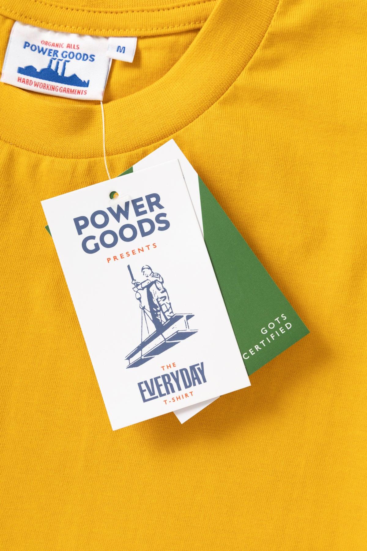 Everyday tee by Power Goods, Organic, 7.5oz cotton, GOTS certified, Not too boxy, not too slim. Built for all seasons and occasions. Heavy-duty, "stay-round" neckline.