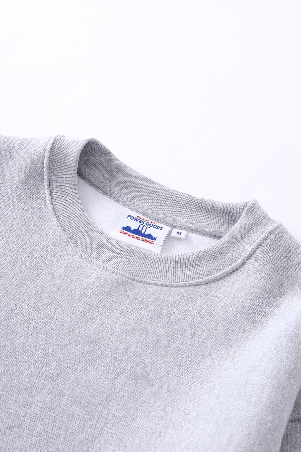 Super heavyweight crewneck by Power Goods, Organic, 16oz Heavyweight, GOTS certified, side ribbing, 100% cotton brushed fleece, elastic cuffs and waistband