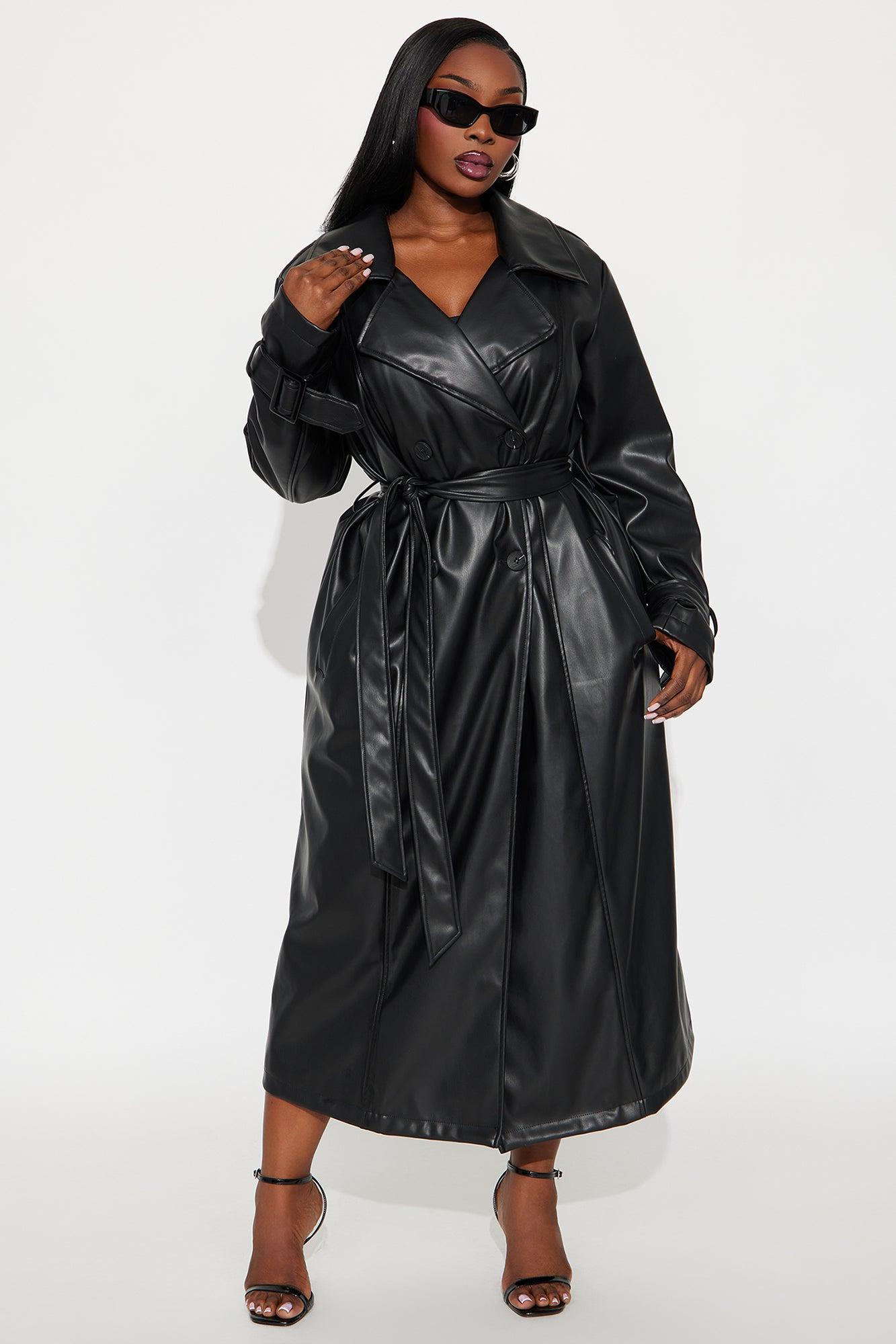 Available In Black And Chocolate. Trench Coat Lapel Collar Long Sleeve Faux Leather Button Closure Belted Fully Lined Self Coating: 100% Polyurethane Self Backing/Lining: 100% Polyester Imported California Proposition 65WARNING: Cancer and Reproductive Harm - www.P65Warnings.ca.gov.