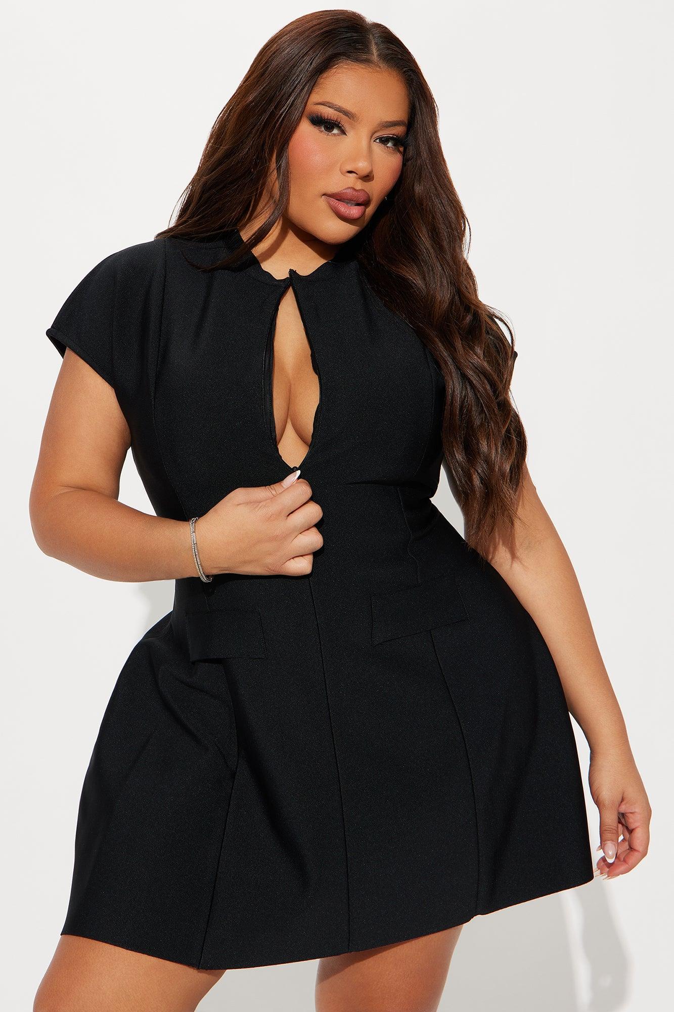 Power Trip Bandage Aline Mini Dress - Black