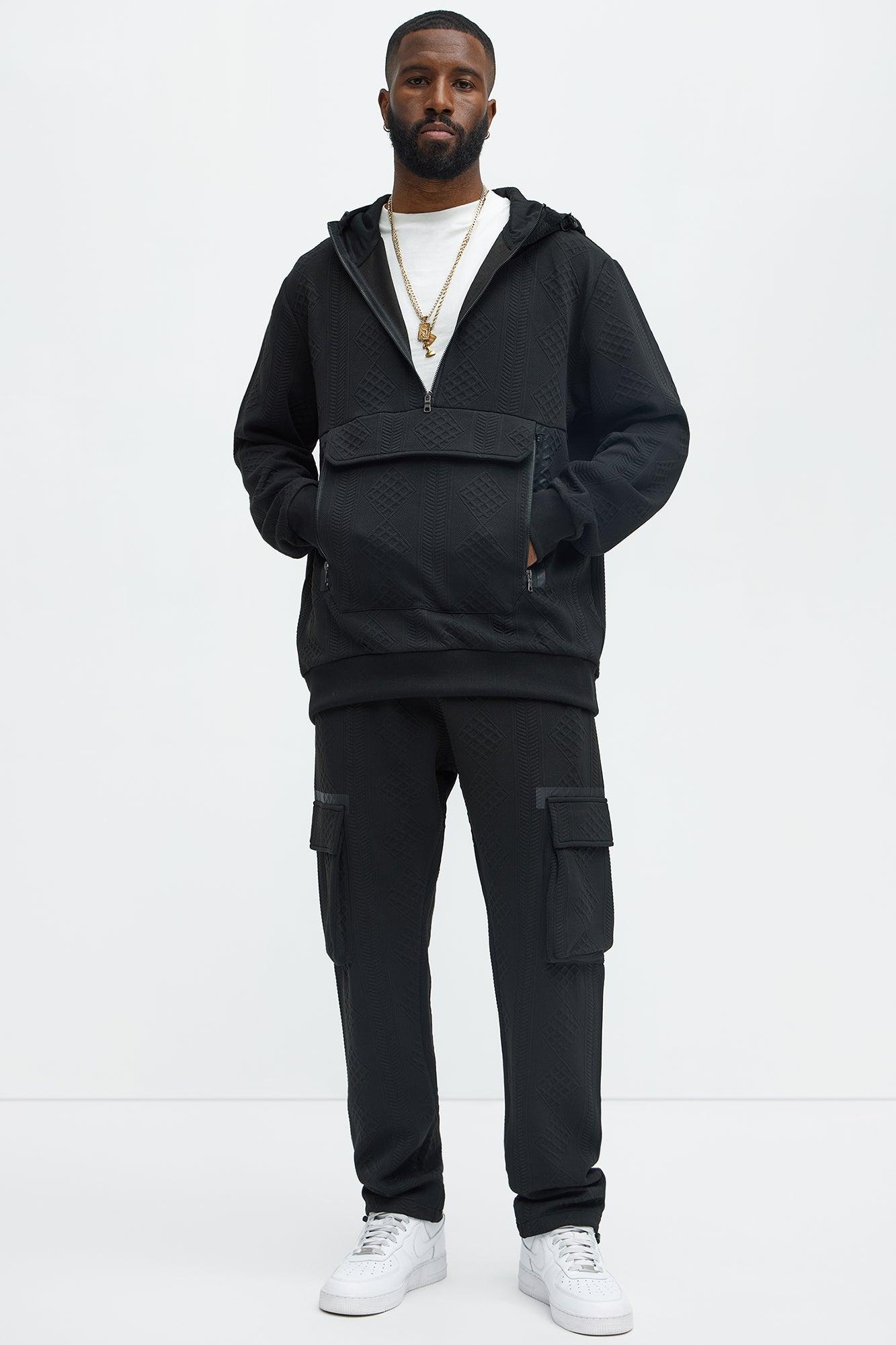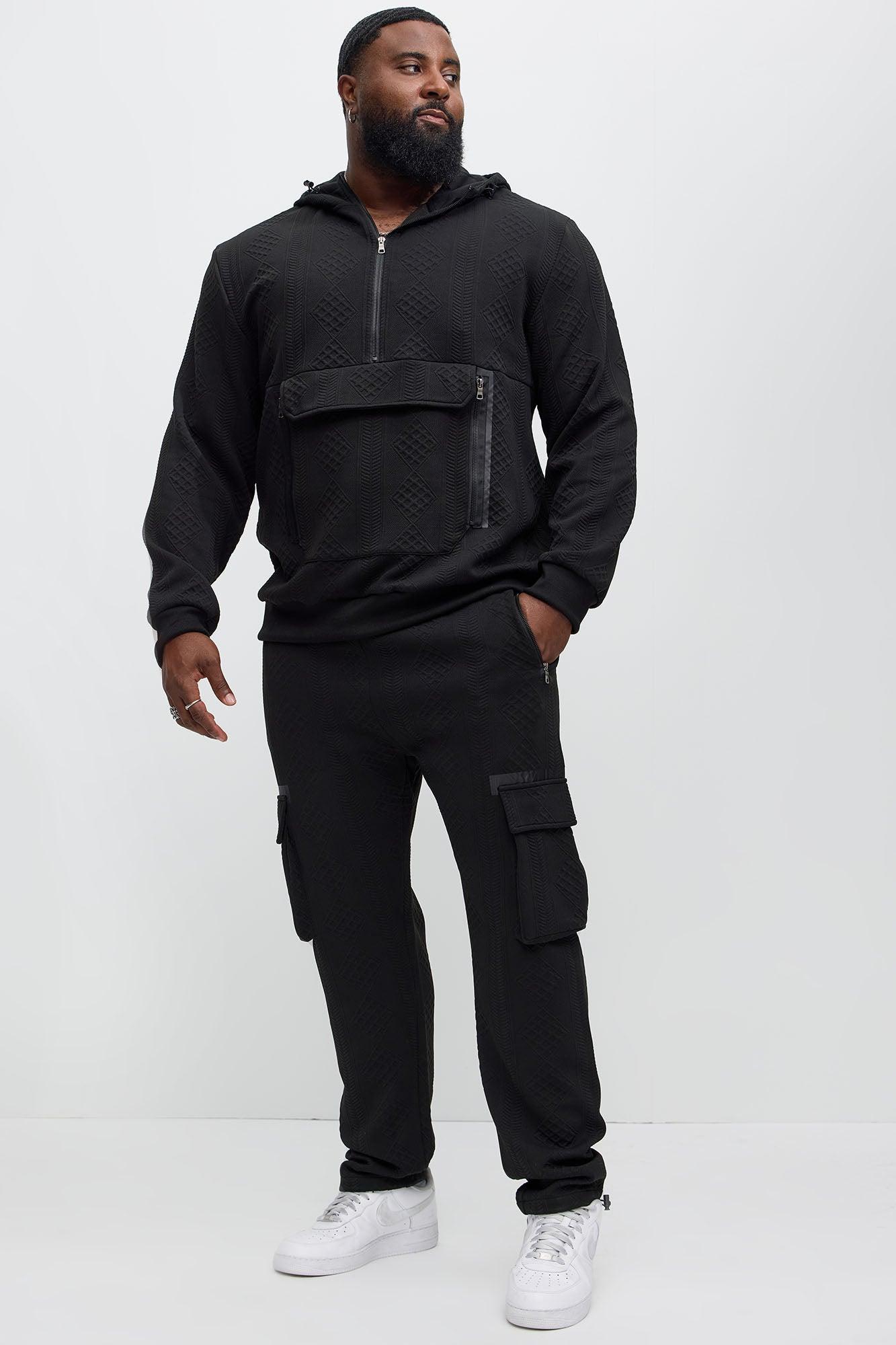 Available In Black And Brown. Elastic Waistband Drawstring Side Pockets Cargo Pockets Pair With "Practical Quarter Zip Hoodie" 95% Polyester, 5% Spandex Imported California Proposition 65WARNING: Cancer and Reproductive Harm - www.P65Warnings.ca.gov.