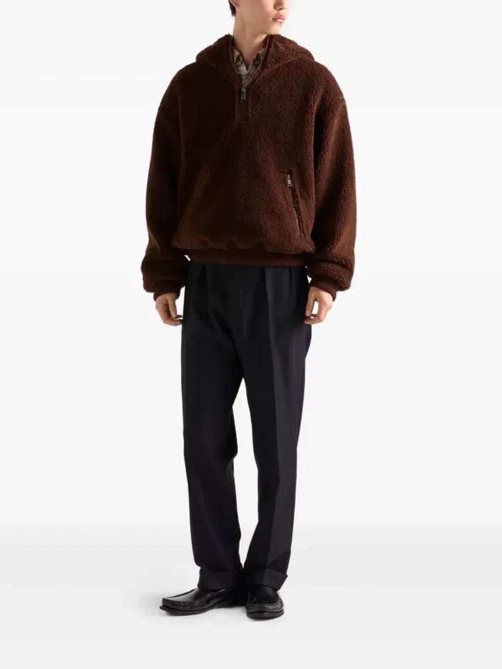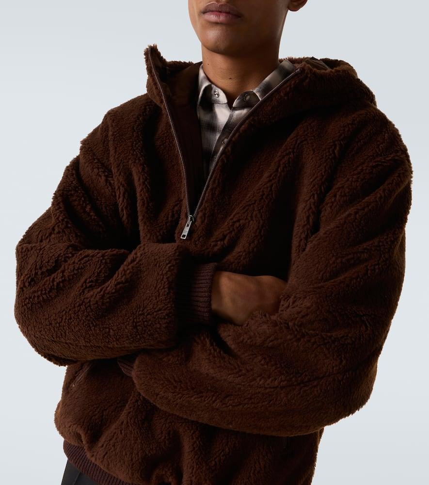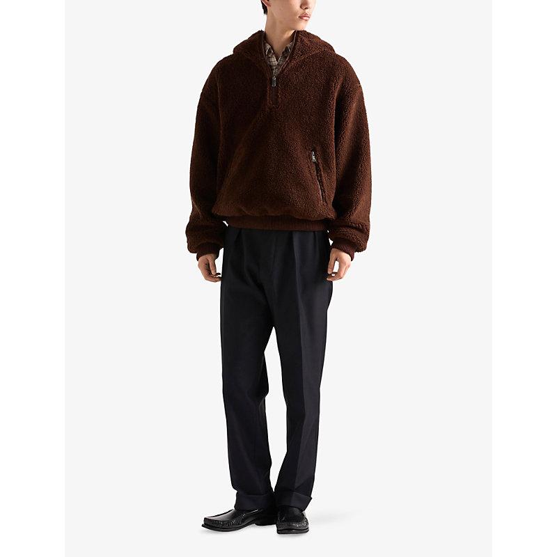Shop Prada Mens Brown Hooded Borg Wool-blend Jacket Xl from 800+ stores, starting at $3160. Material: 52% wool, 48% polyamide. Care instructions: dry clean. Made in Italy. Designer color name: Brown. Item color: brown. Lining: 100% polyamide (recycled). Trim: 88% wool, 11% polyamide, 1% elastane. Cuff: ribbed. Pockets: zipped pockets. Closure: partially zipped front. Hem: ribbed. Wool.