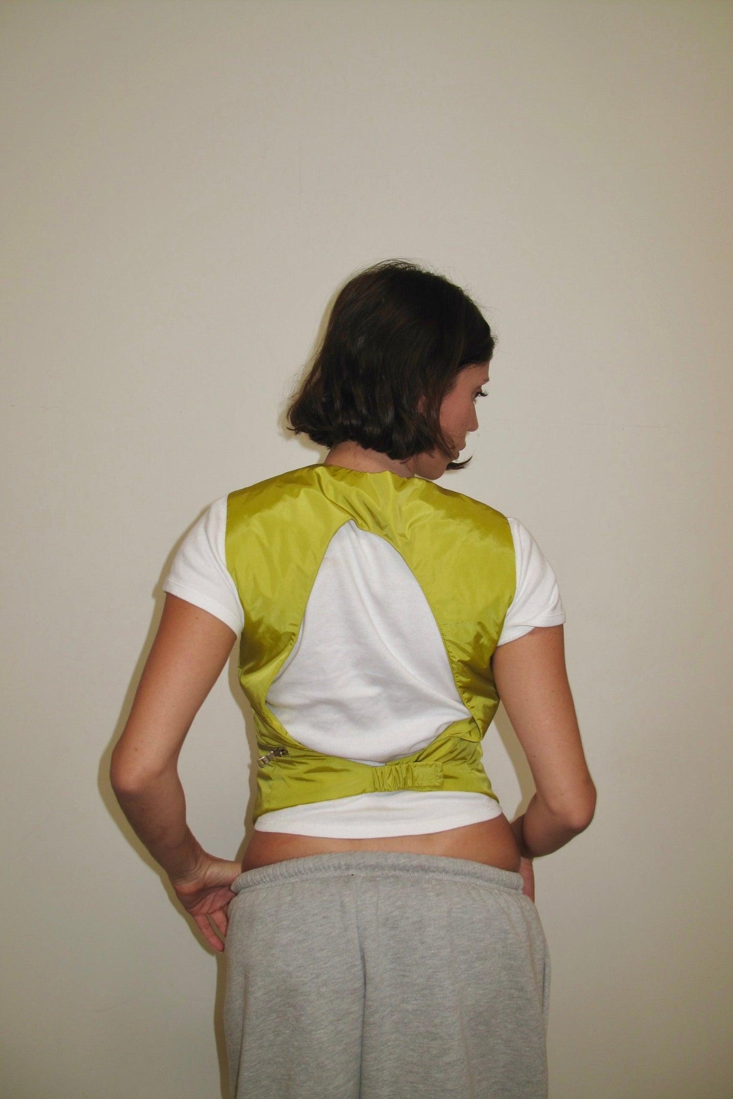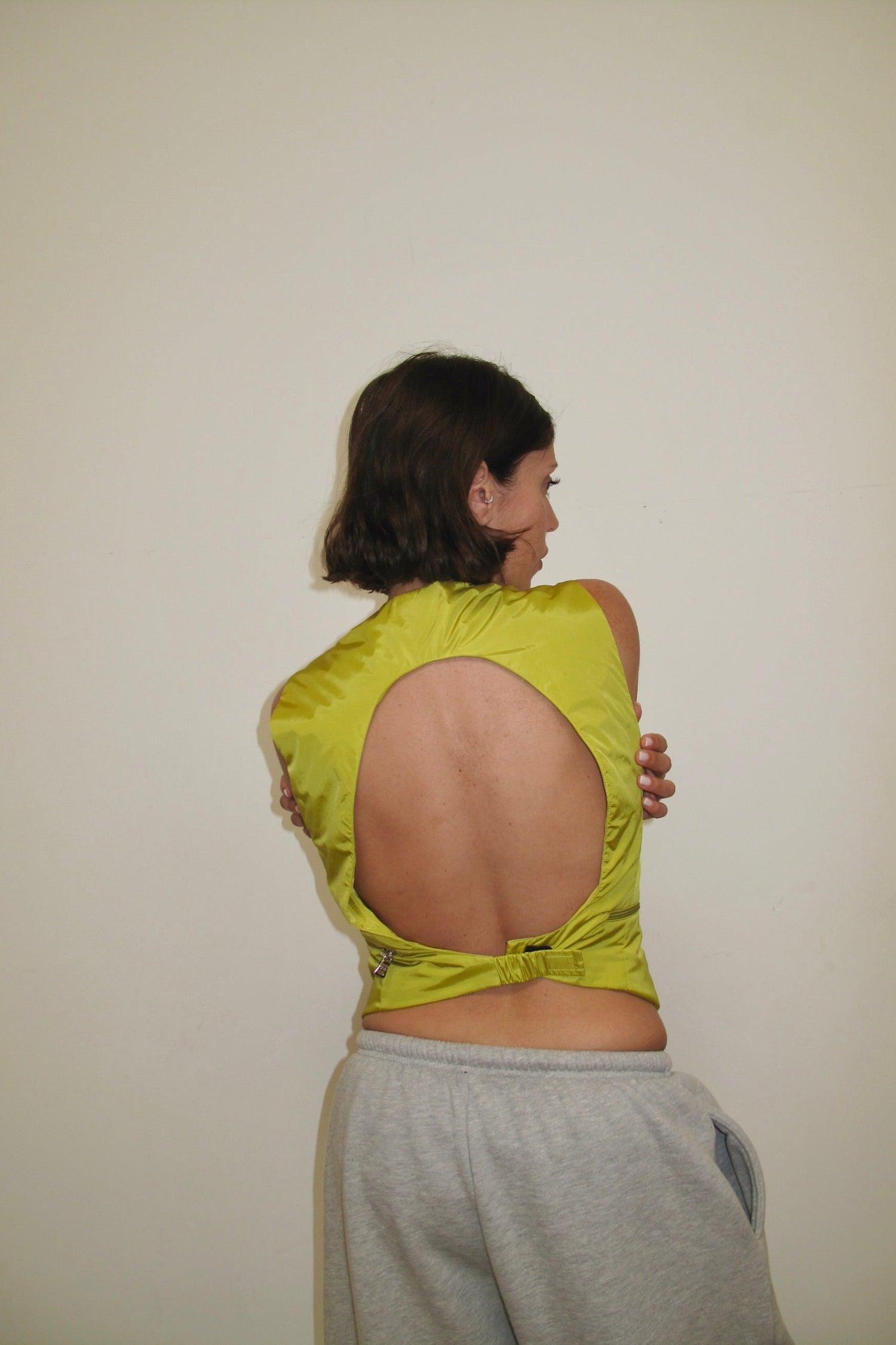 Cropped and clean with a subtle sheen. This Prada nylon vest zips at the front and cinches at the waist—sporty, sharp, and unexpected.