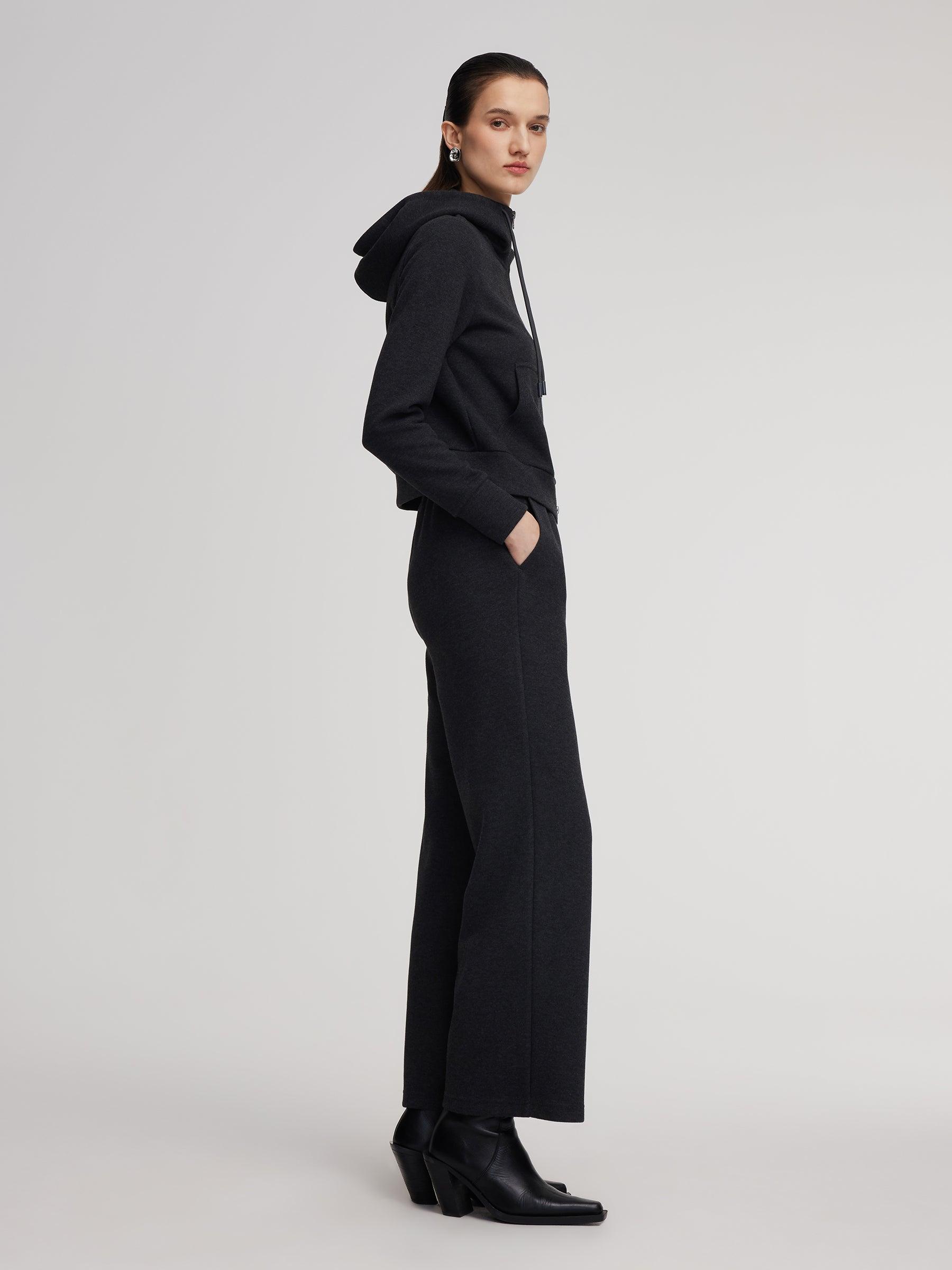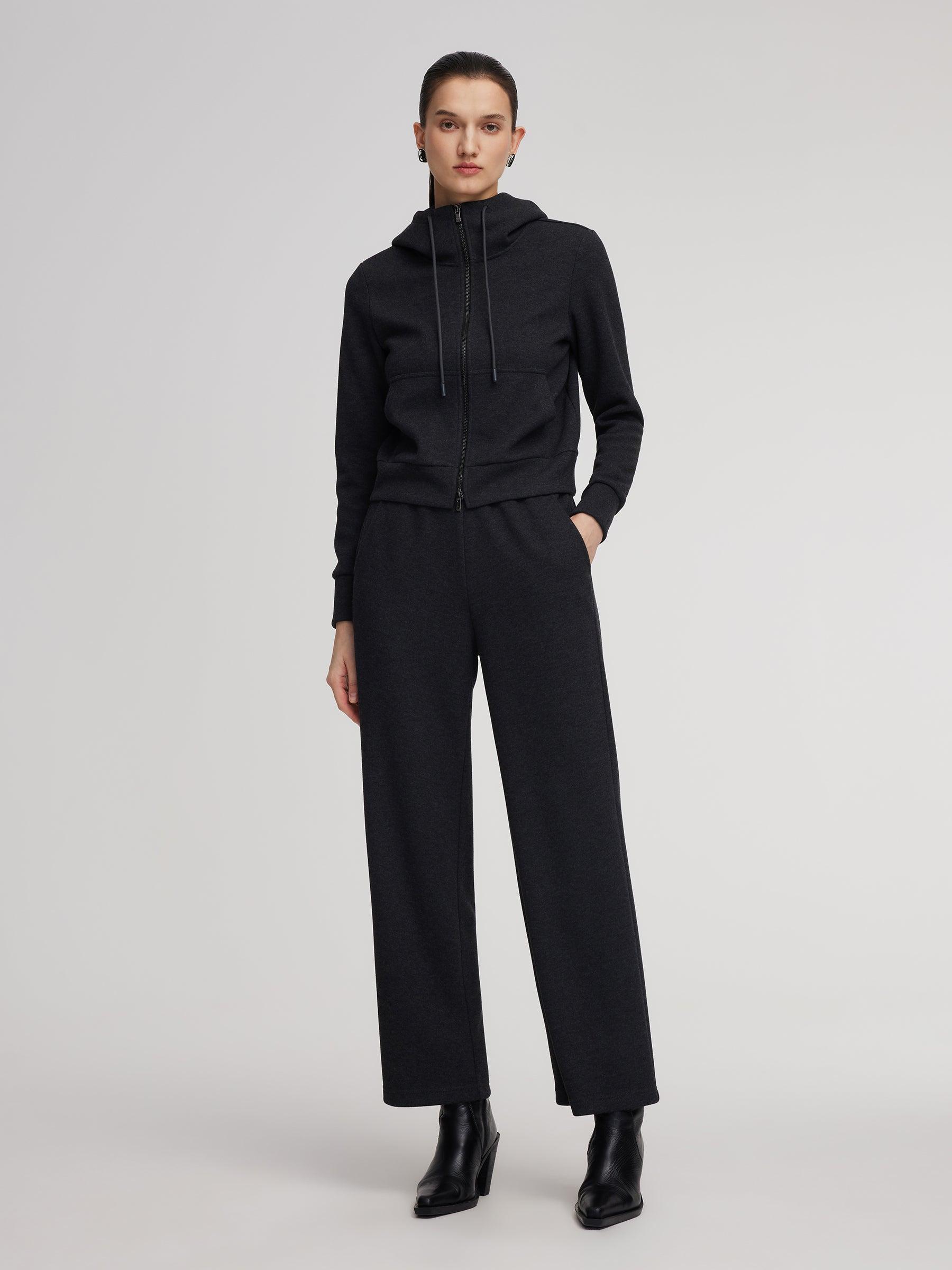 -Two-piece set -Pants with elastic waistband -With pockets This two-piece set pairs a drawstring hooded zip-up jacket with matching full-elastic-waist pants. Made from soft, skin-friendly knit fabric, it offers lasting comfort. The jacket's adjustable hood, full-zip closure, and pockets combine practicality with style,