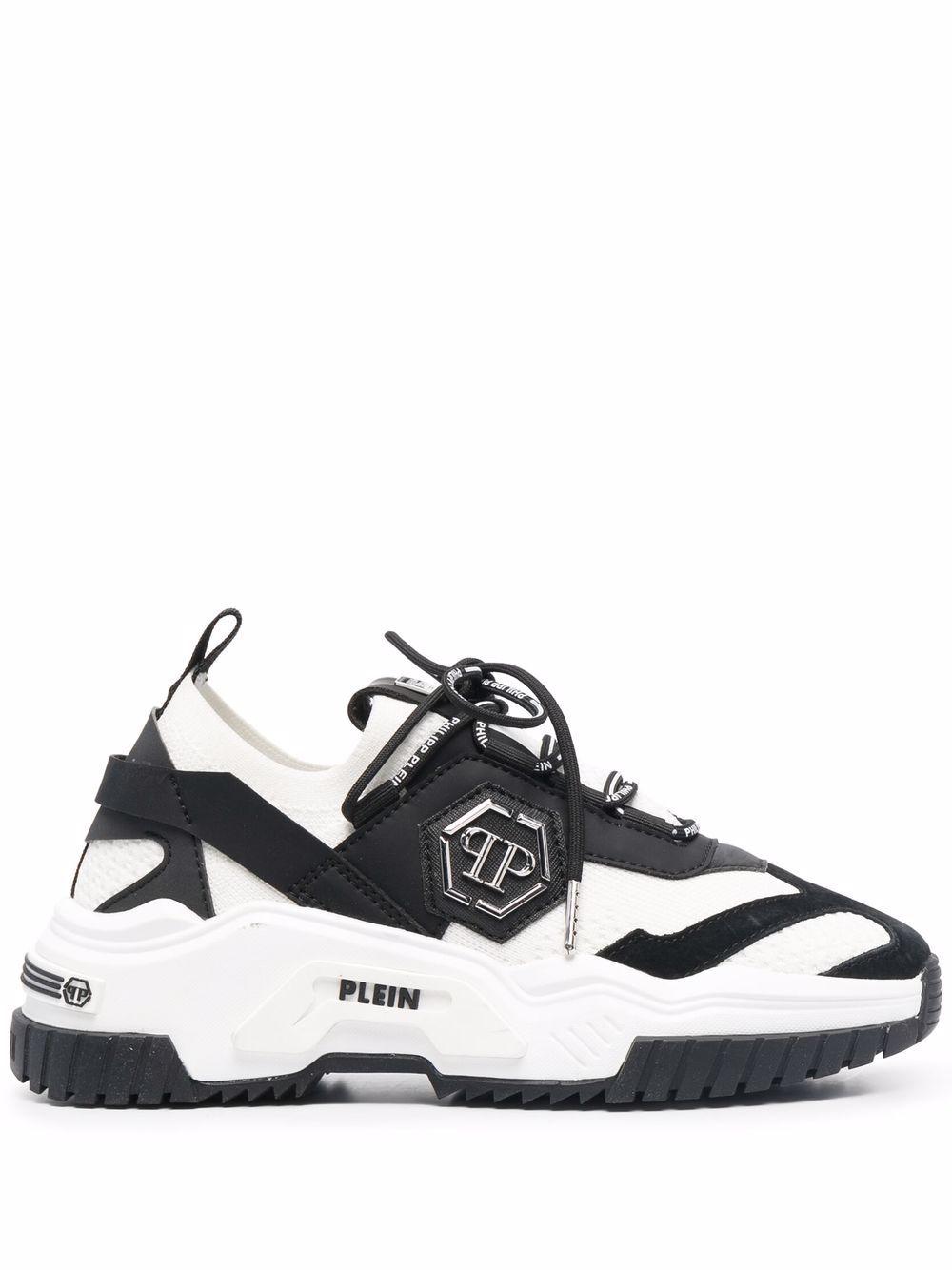 Shop Philipp Plein Predator Vegan Trainer Leather Sneakers In White from 600+ stores, starting at $304. Vegan Trainer Predator Sneaker from Philipp Plein: - Leather and fabric sneaker - Round toe tip - Fastening with loged laces - Metal loged tab at tongue - Smooth and suede leather details - Stretch fabric inserts - Side metal PP Hexagon - Rear gros grain tongue - Rubber sole with contrasting color details