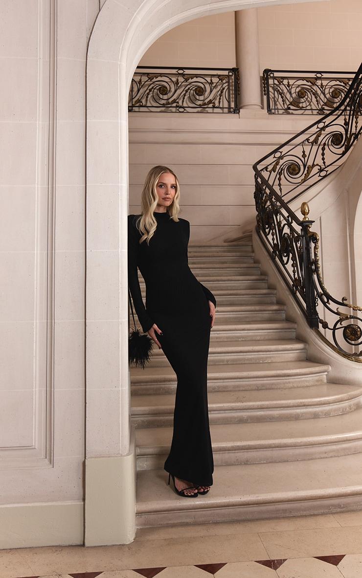 Opt for a touch of luxe in this premium black mesh feather pom pom open back maxi dress. Made from a sheer black mesh material with a feather pom pom embellishment and an open back design. Style with subtle jewelry and black heels for refined look that is sure to have you feeling confident.Length approx 155cm/61inch (Based on sample size US 4)Model wears size UK 8/ EU 36/ AUS 8/ US 4Model Height - 5ft 5inchp]:!mb-4inch>Brand: PrettyLittleThingCategory: DressesProduct type: Bodycon DressColor: BlackMaterial: Slinky JerseyDesign: PlainNeckline: Open BackSleeves: LongOccasion: Occasion
