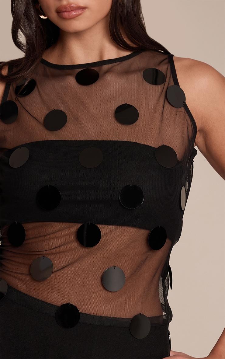 Step into shimmer with the premium black sheer black disc sequin racer long top. Made in sheer fabric with oversized sequin discs and a racer neckline, it’s bold and glamorous. Style over tailored pants or layer as a statement evening piece.Length approx 48.5cm/19inch (Based on sample size US 4)Model wears size UK 8/ EU 36/ AUS 8/ US 4Model Height - 5ft 8inchp]:!mb-4inch>Brand: PrettyLittleThingCategory: TopsProduct type: Vest TopColor: BlackMaterial: MeshDesign: EmbroideredNeckline: CrewSleeves: SleevelessOccasion: Evening