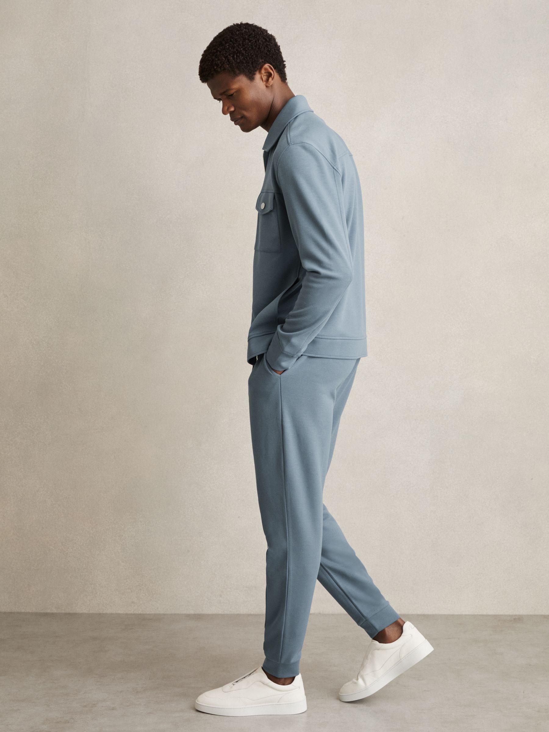 Premium Interlock Zip-Through Overshirt in Airforce Blue