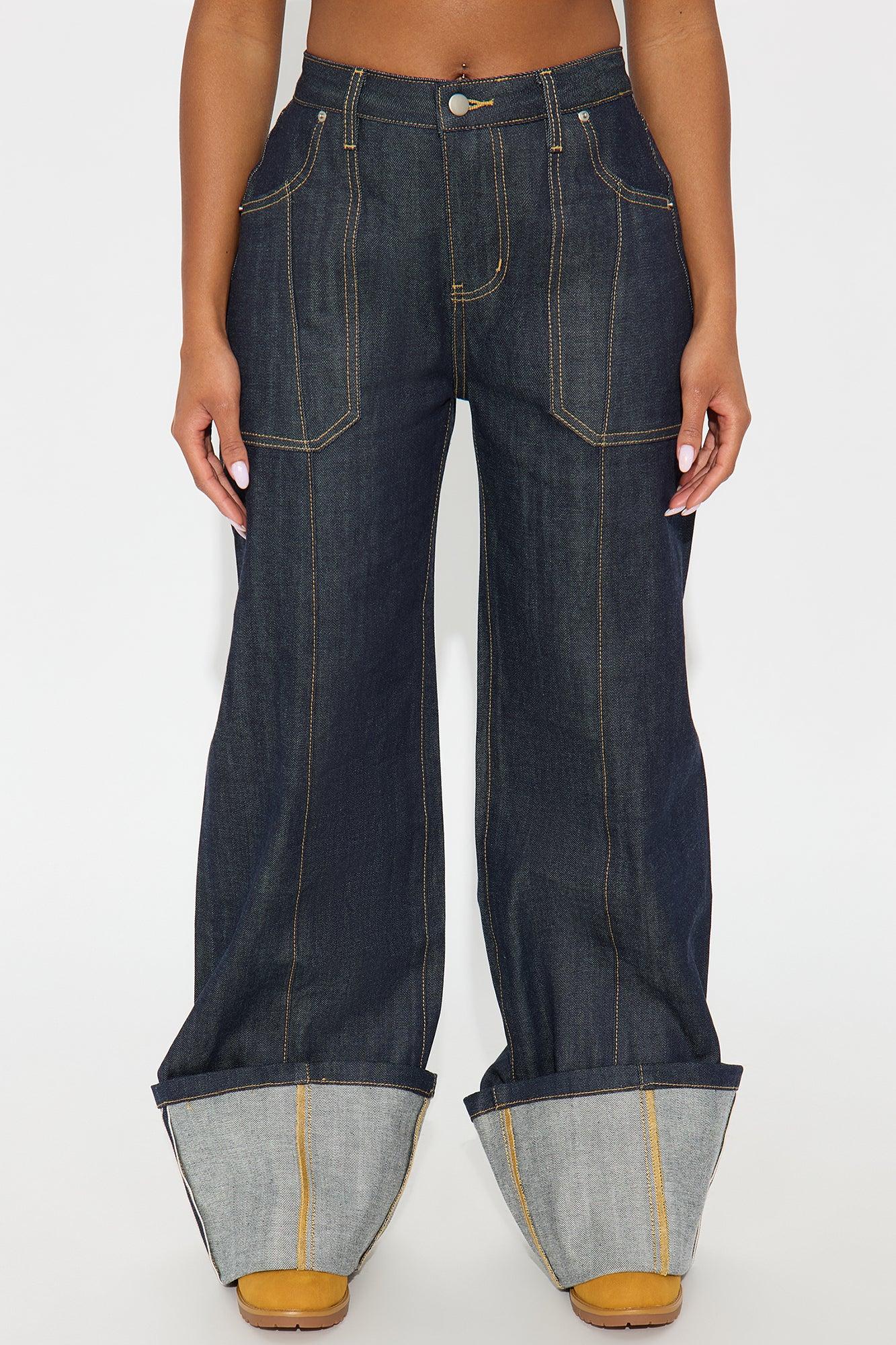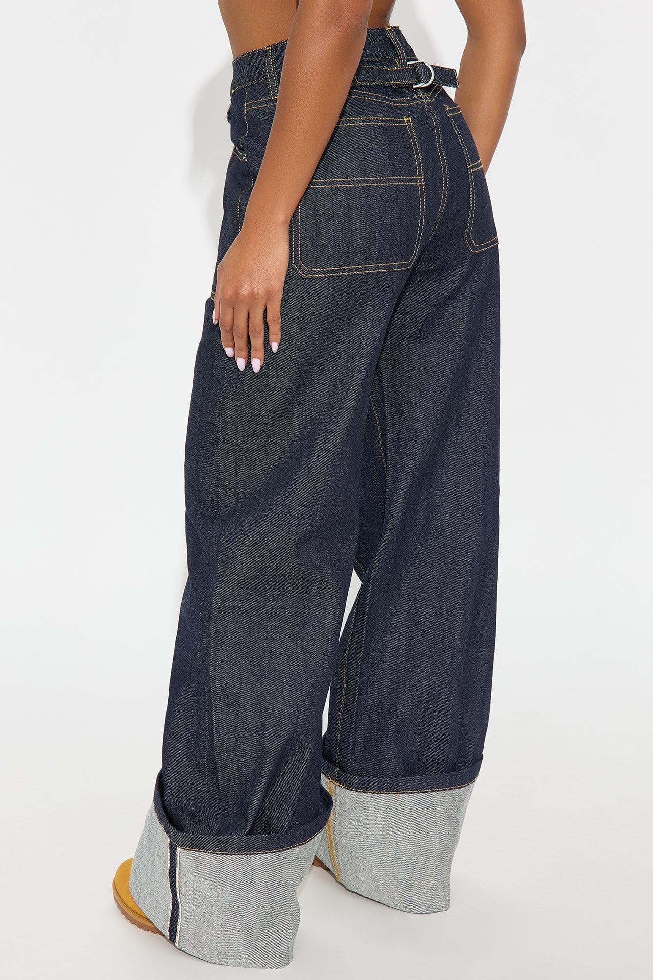 Available In Dark Denim. Wide Leg Jean Utility Detail Seaming 11" Rise 34" Inseam 7" Tacked Cuff Low Stretch 99% Cotton 1% Spandex Disclaimer: Due the To The Specialized Dye Process, Loose Dye Can Stain On Contact. Do Not Wash with Other Garments Imported California Proposition 65WARNING: Cancer and Reproductive Harm - www.P65Warnings.ca.gov.