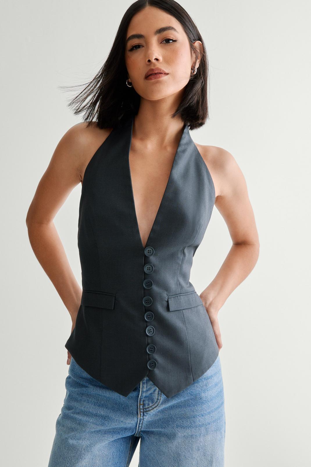 Backless is back. Feel put together when you opt for our vest. Made using a premium material, with a figure-hugging tailored fit, a flirty backless design and button fastenings. Pairs well with the matching pants and strappy heels to take you seamlessly from dinner to drinks.