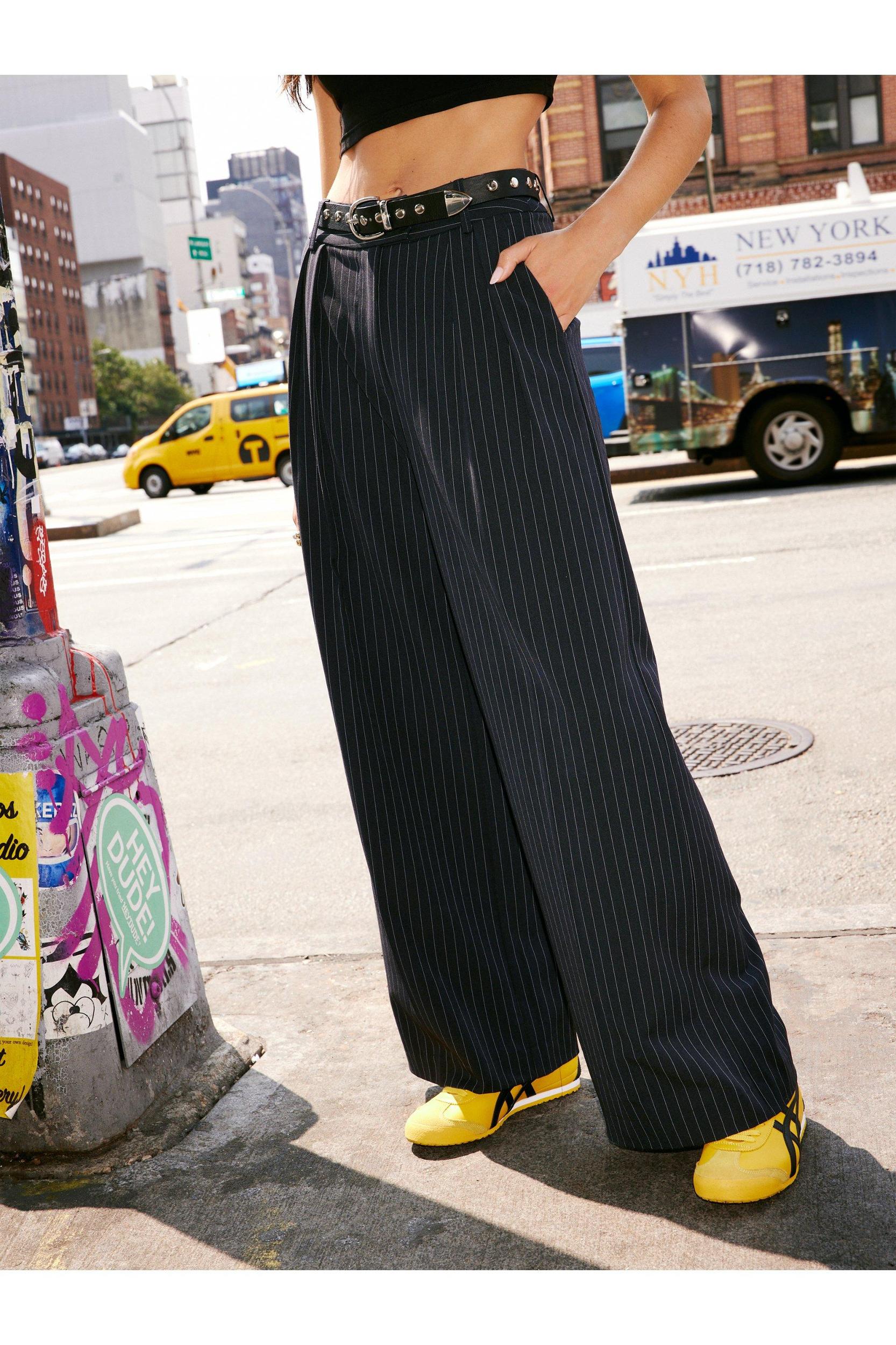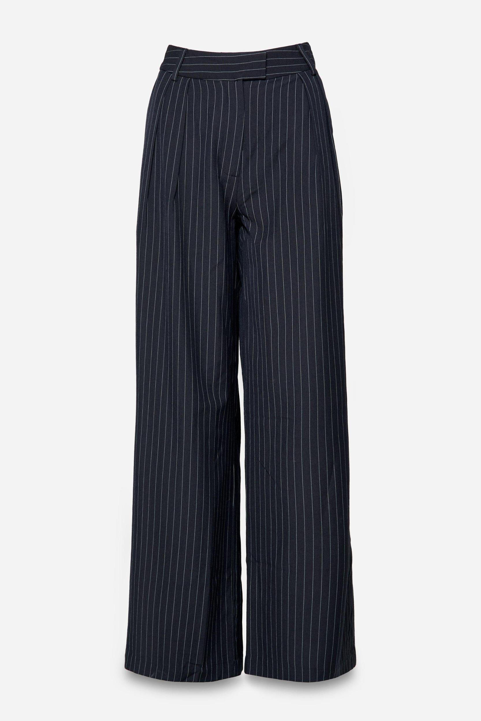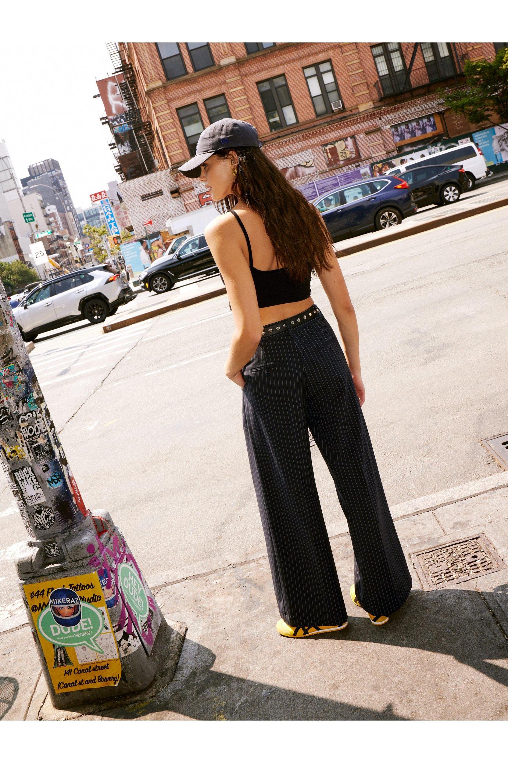 Show off. Feel chic in this pant, made from a high quality material with a tailored fit, pinstripe design and wide leg detail. We're obsessed with how you'll look in these. Style with the matching shacket, a white tee, and fresh kicks for a tailored finish we can't take our eyes off. Have we caught your attention?