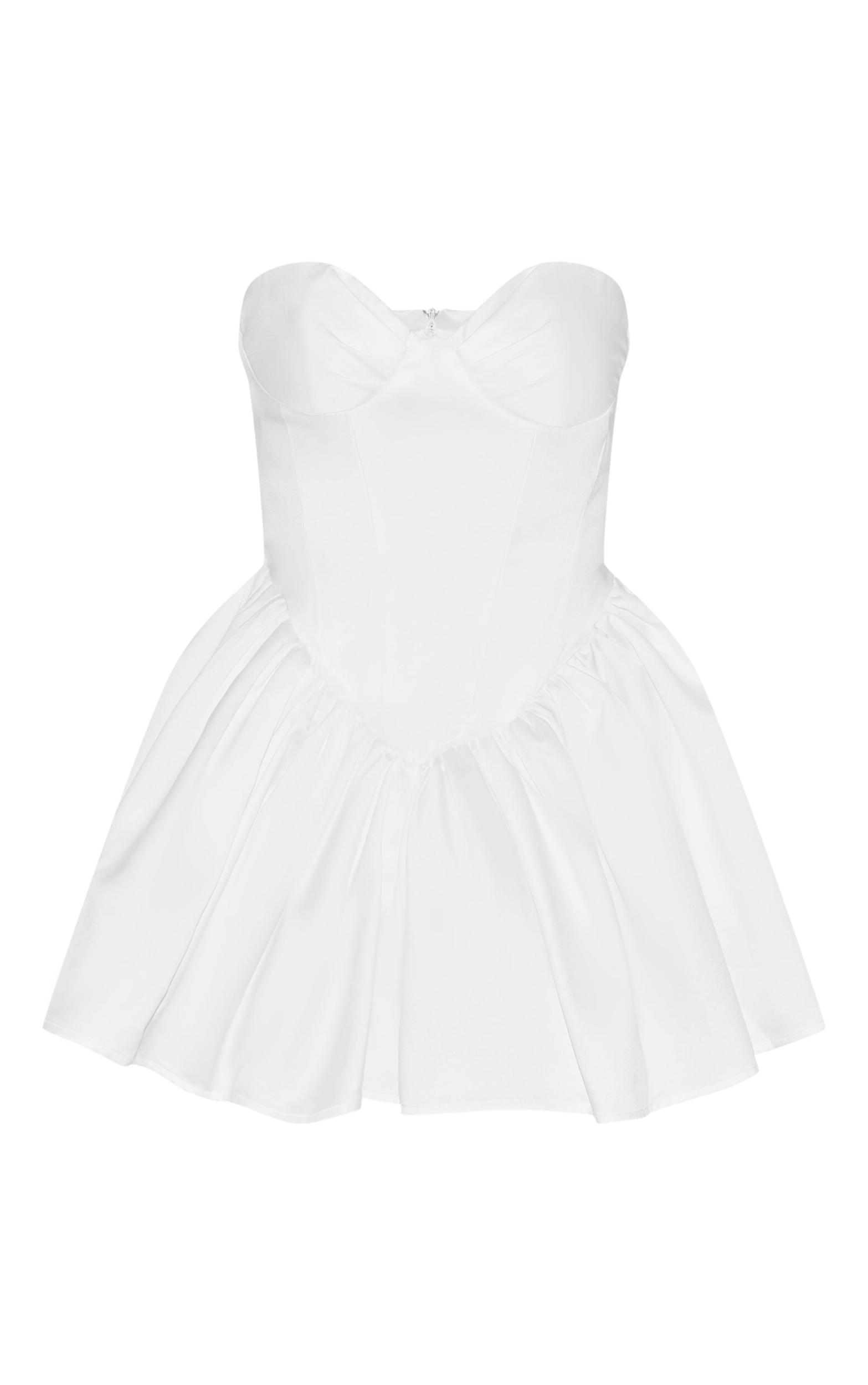 Keep it cute this season with this premium white satin sweetheart corset hip pleated romper. Designed in a luxe white satin fabric with a sweetheart neckline, corset detailing, and hip pleats, this romper is the fashion-forward addition your wardrobe needs. Simply style with understated heels and your favorite jewelry for an elevated look.Length approx 81.5cm/32inch (Based on sample size US 4)Model wears size UK 8/ EU 36/ AUS 8/ US 4Model Height - 5ft 8inchp]:!mb-4inch>Brand: PrettyLittleThingCategory: Jumpsuits & PlaysuitsProduct type: Floaty PlaysuitColor: WhiteMaterial: SatinDesign: PlainNeckline: BandeauSleeves: BandeauOccasion: Occasion