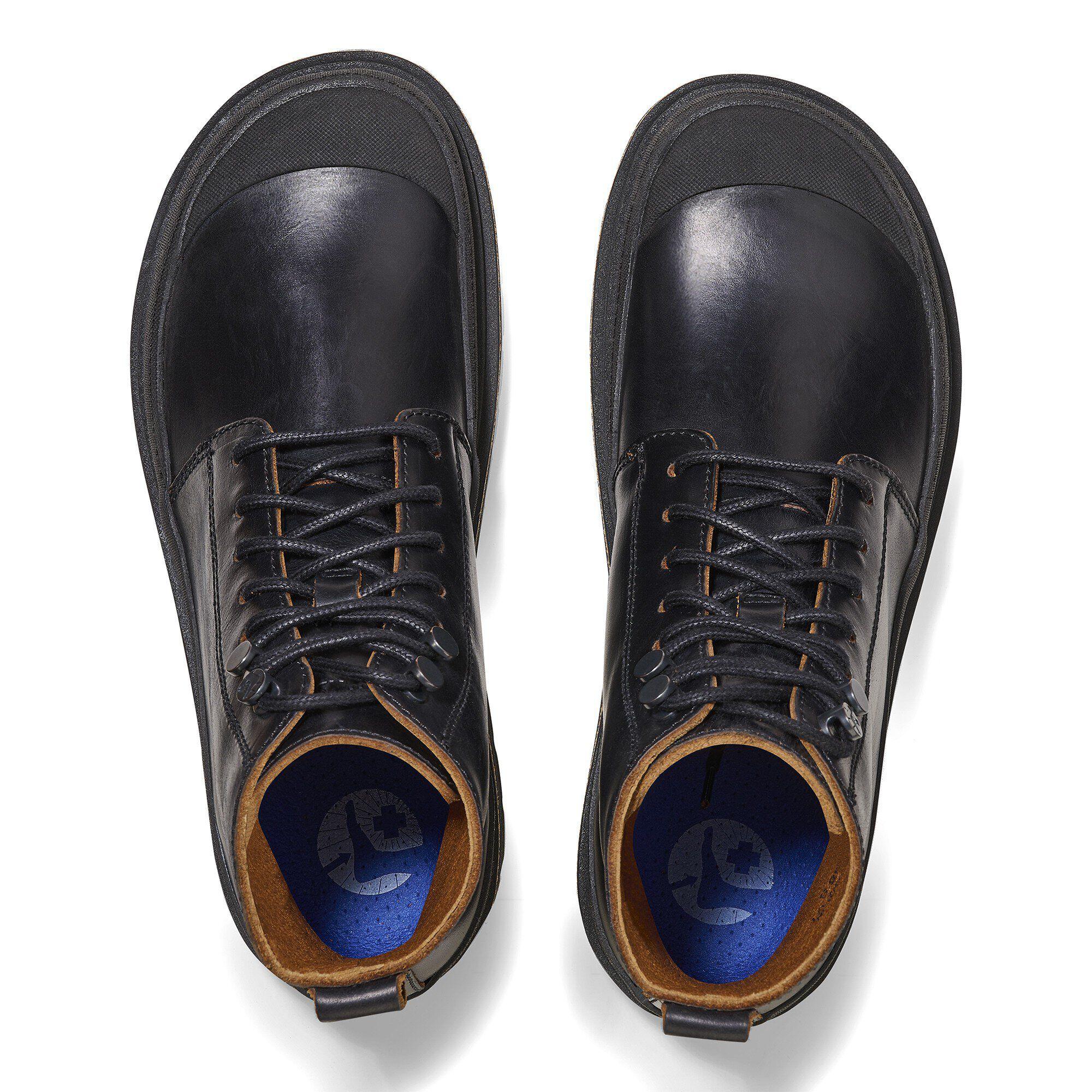 Laced up with premium materials and legendary comfort. The new Prescott ankle boot is crafted with our highest quality natural leather. Inside, a Deep Blue Footbed optimizes your comfort, with a moisture-wicking lining and PU base that works with your natural walking motion on long, active days. Complete with a natural rubber outsole to keep you confidently on the move. BIRKENSTOCK Deep Blue Footbed for underfoot support Soft natural leather upper Microfiber footbed lining is moisture wicking Natural rubber outsole for added traction Footbed made in Germany