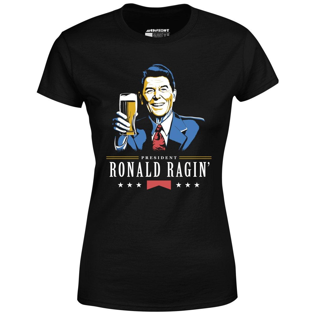 Ronald Ragin'. A funny 4th of July beer themed design inspired by President Ronald Reagan. Printed on our super soft 100% ringspun & combed cotton women's T-Shirt. Or upgrade to our Luxury 52/48 cotton/poly vintage heather edition for an even softer classic look. We print & ship all of our high quality graphic tees in the USA.