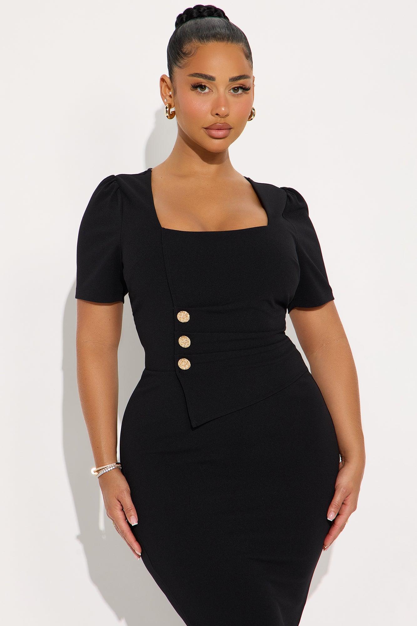 Presley Short Sleeve Midi Dress - Black Female