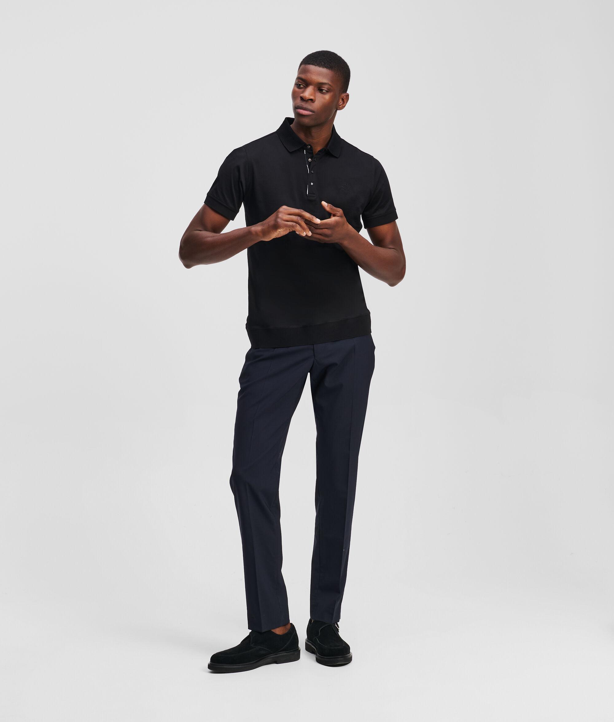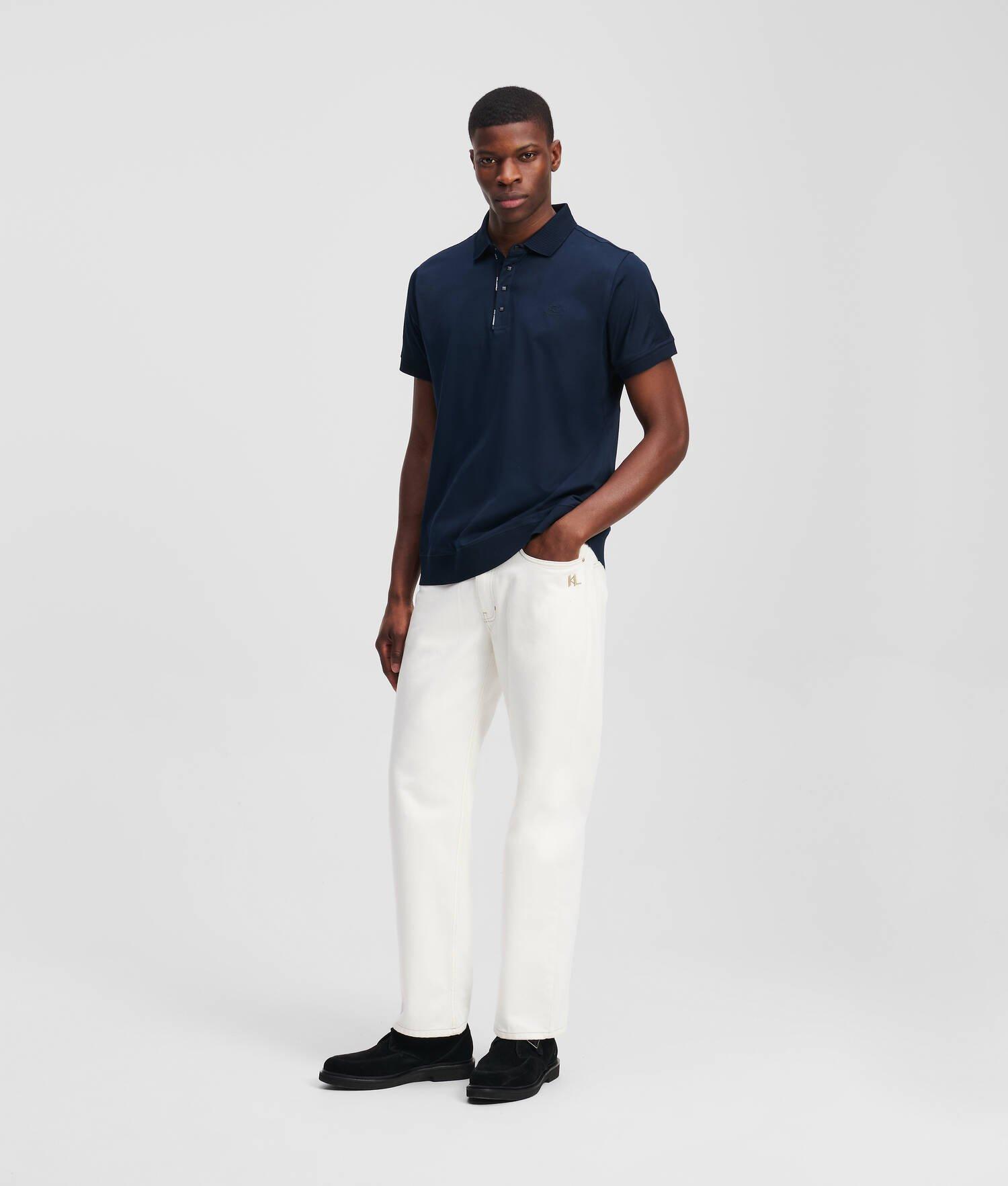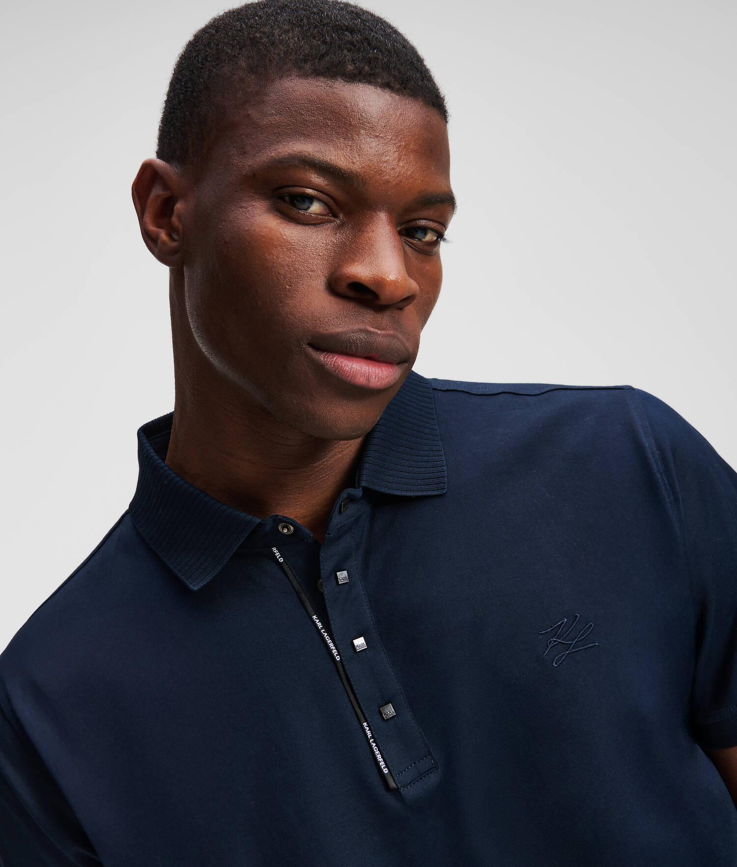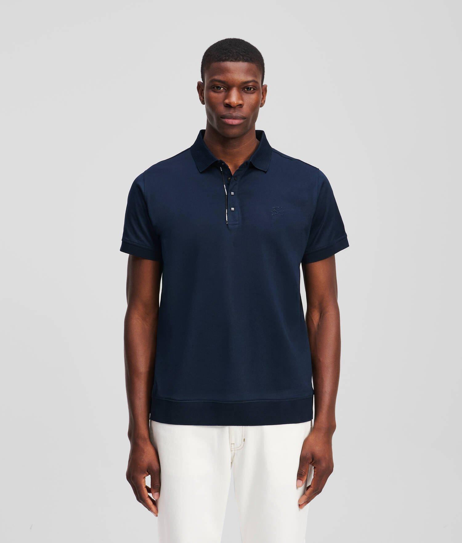 Elevate casual outings with this polo shirt, featuring a classic pointed collar and a press button placket. Sleeve cuffs and the hem are accented by light ribbing ensuring a comfortable fit, while the subtle KARL LAGERFELD logo piping and tonal KARL Autograph embroidery add a touch of distinction.