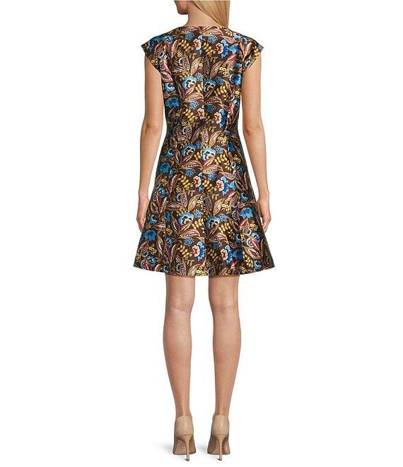 Preston & York Anita Crew Neck Cap Sleeve Sheath Print Mikado Dress