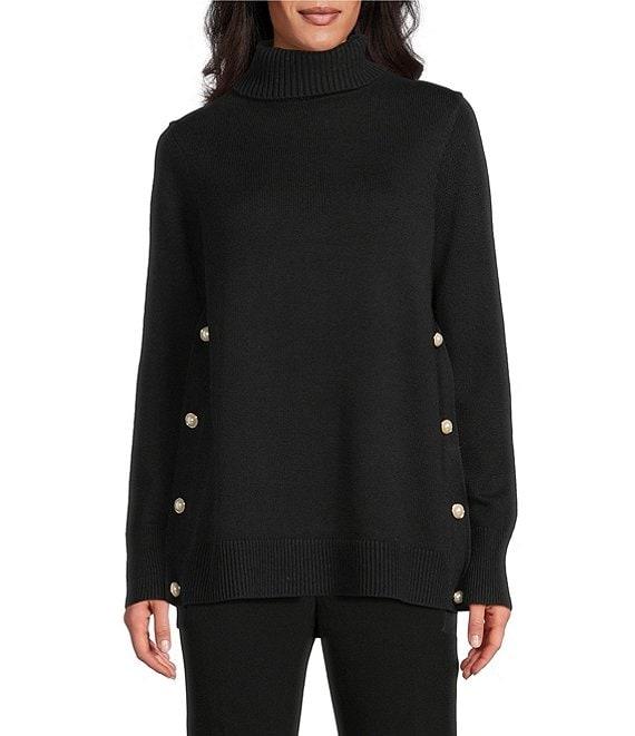 From Preston & York, this sweater features: Wool/acrylic/nylon fabrication Turtle neckline Long sleeves 4 pearl/gold rim shank button closure Pullover construction Polyester/acrylic/nylon/wool Machine Wash Imported. Dillard's Exclusive.