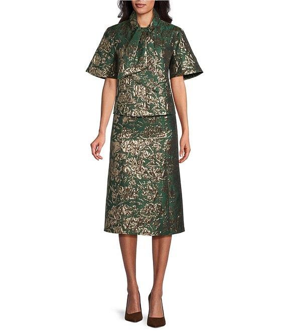 From Preston & York, this skirt features: Metallic jacquard fabrication Invisible zipper and hook & eye center back closure Approx. 30.25" length Polyester/metallic fiber content Polyester/elastane lining Machine wash Imported. Dillard's Exclusive