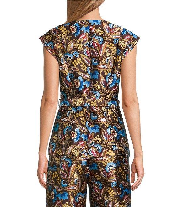 From Preston & York, this vest features: Printed Mikado fabrication Crew neckline Sleeveless Belt included Lined Front zipper closure Approx. 27" length Polyester Machine wash cold Imported.