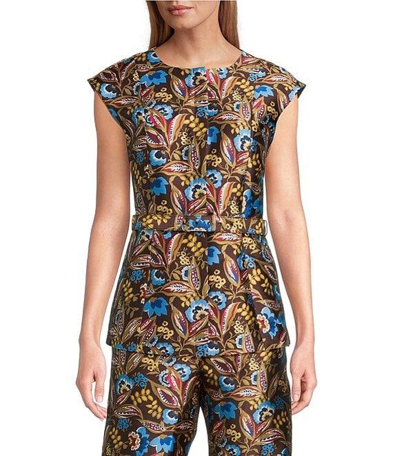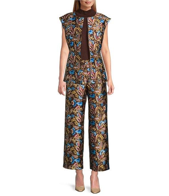 Preston & York Eliza Coordinating Crew Neckline Sleeveless Printed Mikado Vest
