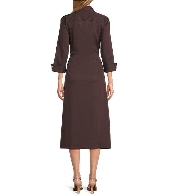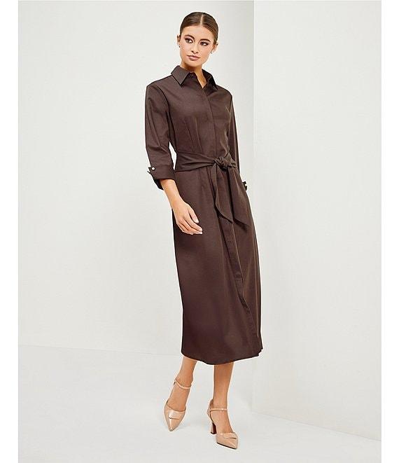 Preston & York Frances Belted Sheath Point Collar 3/4 Sleeve Midi Dress