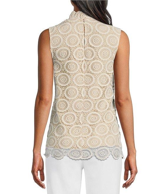 Preston & York Lorraine Lace Mock Neckline Sleeveless Tie Back Blouse