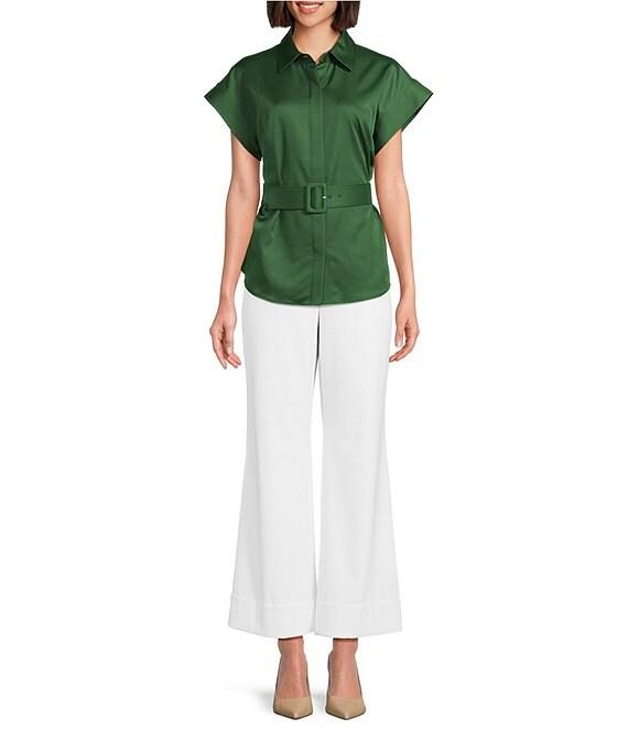 Preston & York Sasha Belted Short Sleeve Point Collar Blouse