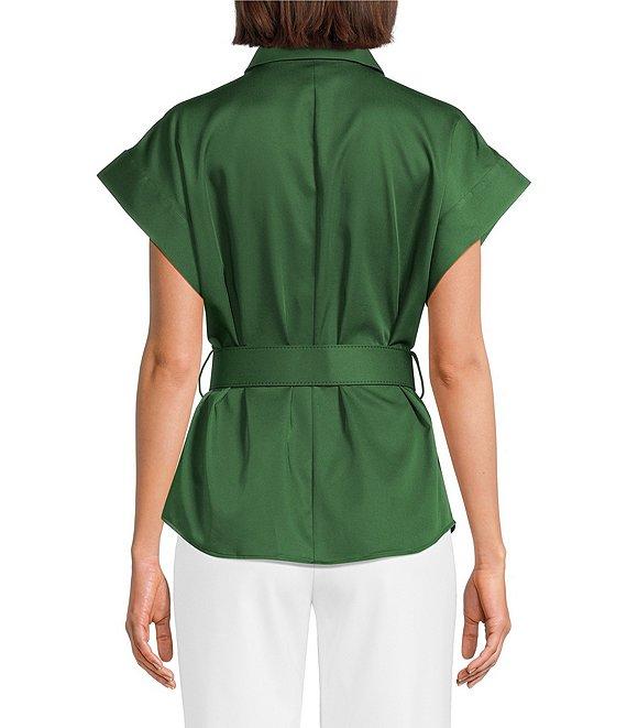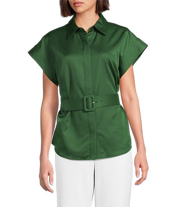 From Preston & York, this blouse features: Point collar Short sleeves Belt included Button front closure Approx. 25.5" length Lyocell/polyester/elastane Dry clean Imported.