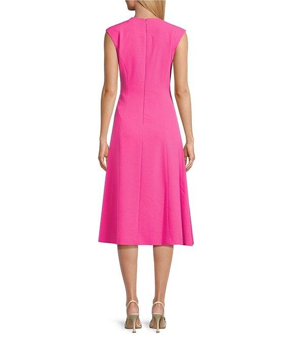 Preston & York Sophia Crew Neck Cap Sleeve Crepe Midi Dress