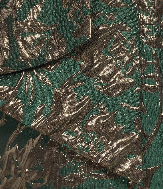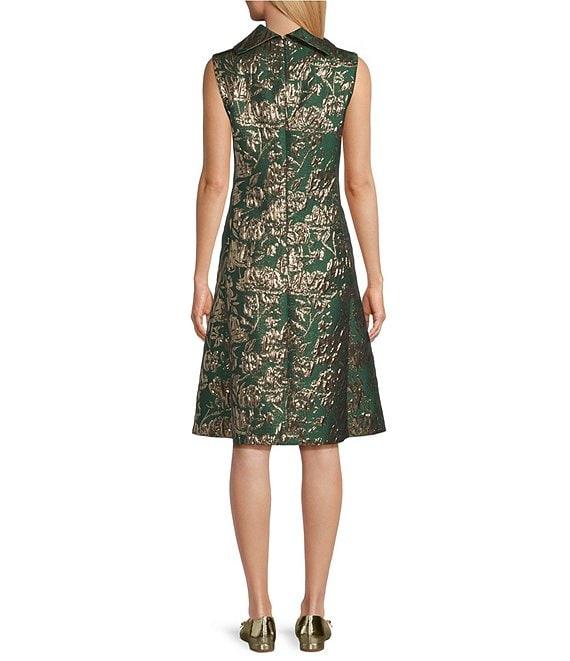 From Preston & York, this dress features: Metallic Jacquard Fabrication Tie Neckline Sleeveless Invisible Zipper and Hook & Eye Center Back Closure Side Pockets Length Approx. 41" Length Polyester/Metallic Fiber Content Polyester/Elastane Lining Machine Wash Imported. Dillard's Exclusive.