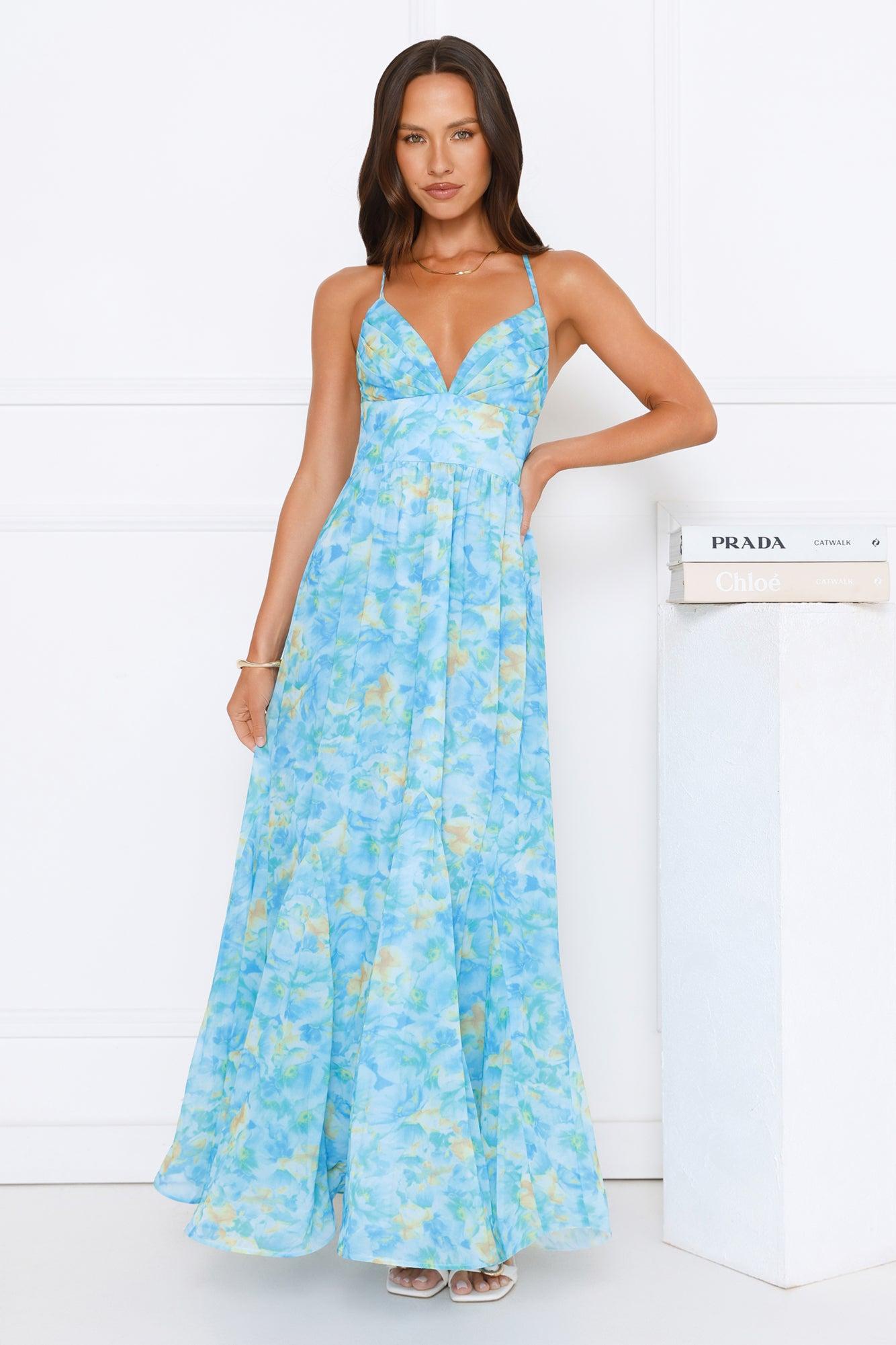 Pretty In Bloom Maxi Dress Blue