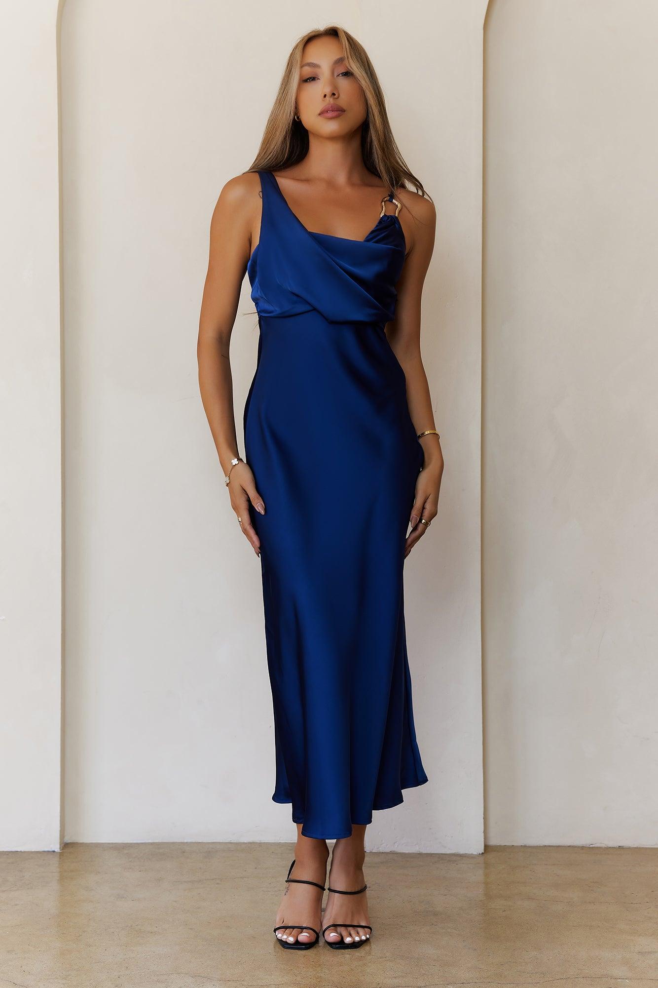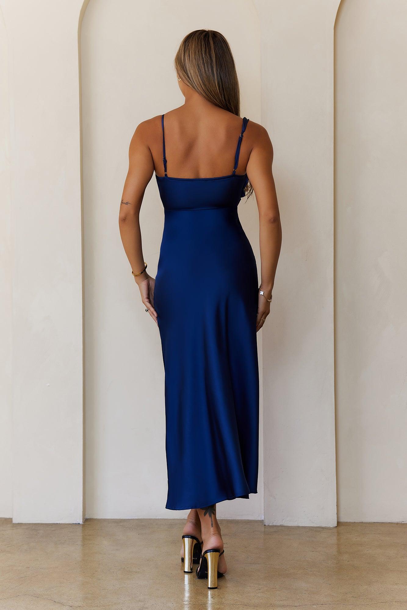 Pretty in Passion Satin Maxi Dress Navy