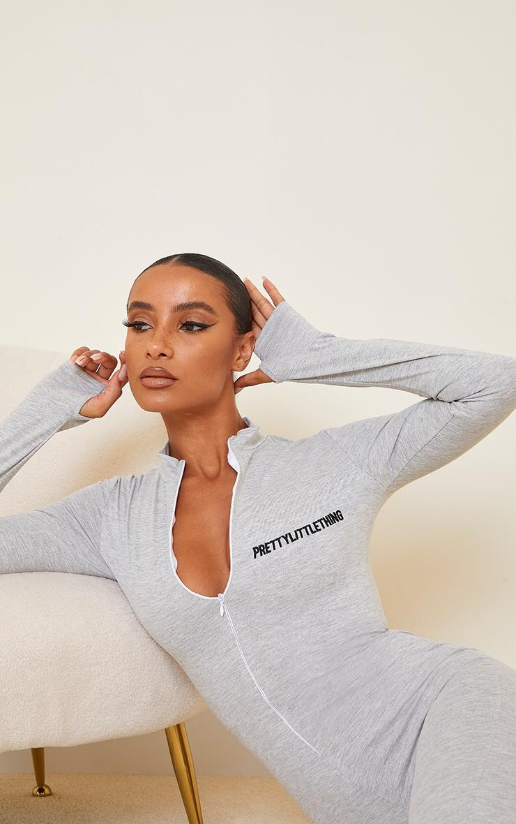 Hit refresh on your off-duty wardrobe with this jumpsuit doll. Featuring a grey marl material with a black 'PrettyLittleThing' graphic, a zip front, and long sleeves. Team it with fresh chunky kicks to complete the look. Length approx 132cm/52 (Based on a sample size UK 8) Model wears size UK 8/ EU 36/ AUS 8/ US 4 Model Height - 5ft 7