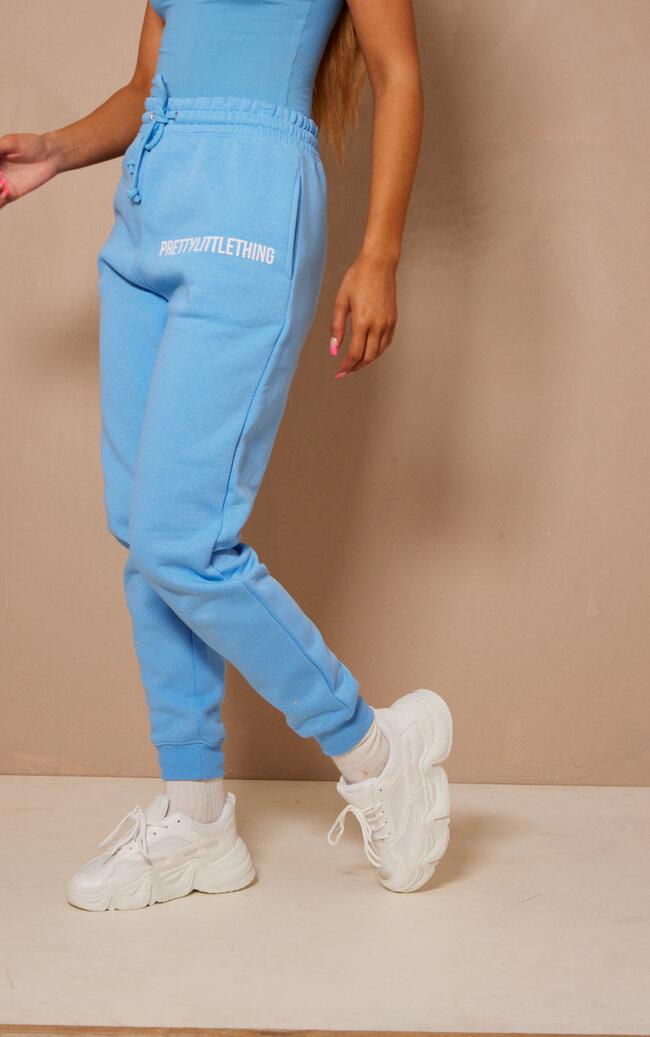 Elevate your off-duty repertoire with these bright blue sweatpants. Cut in a high-waisted silhouette that flatters the form, they're finished with a subtle 'PrettyLittleThing' logo detail for a touch of brand recognition. The cuffed ankles lend a contemporary edge, making them ideal for styling with chunky sneakers or minimalist sandals. Crafted for comfort without compromising on style, these sweatpants are an effortless essential. Team yours with a cropped knit and sleek cross-body bag for an elevated take on casual dressing. Length approx 74cm/29inch (Based on a sample size S) Model wears size SModel Height - 5ft 7inchp]:!mb-4inch>Brand: PrettyLittleThingCategory: AthleisureProduct type: Cuffed JoggersColor: Bright BlueMaterial: Single JerseyOccasion: Day