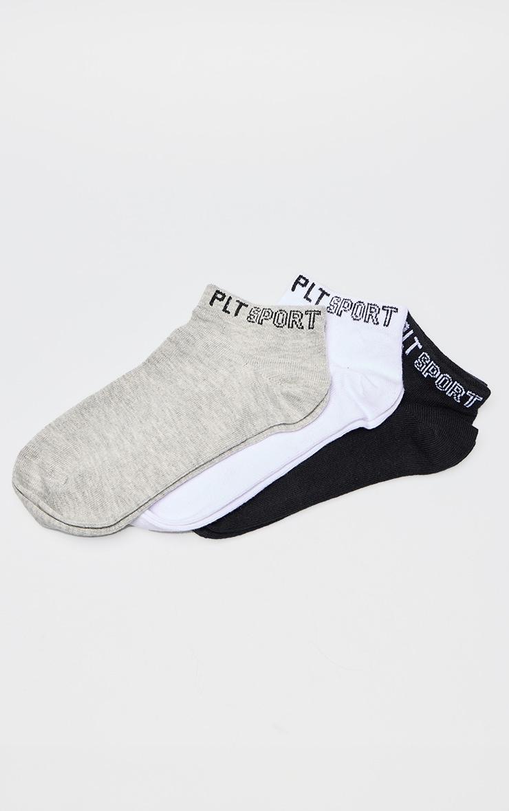 These three pairs of sports ankle socks are your new workout essential doll. Featuring a black, white and grey pair all with a PrettyLittleThing Sports graphic, they're a gym-worthy must-have.p]:!mb-0inch>Brand: PrettyLittleThingCategory: AccessoriesProduct type: SocksColor: MonochromeMaterial: Cotton JerseyOccasion: Day