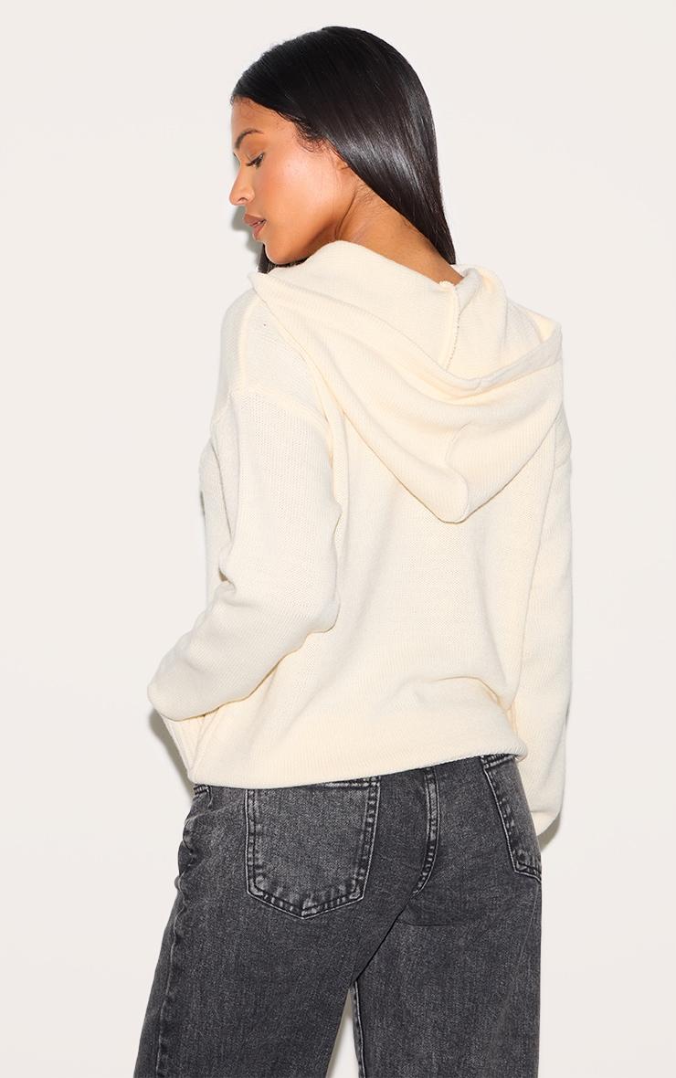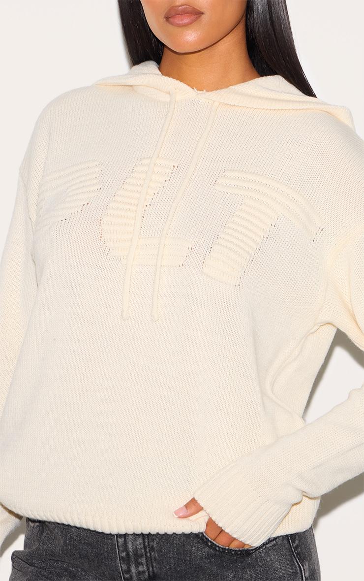 Consider this your new off-duty essential. Crafted from a soft cream knit, this long-sleeve hoodie offers a refined take on relaxed dressing. The subtle 'PrettyLittleThing' detail adds an understated brand signature. Its elongated silhouette makes it perfect for pairing with tailored pants for an elevated take on casual style. Length approx 79cm/31inch (Based on a sample size S) Model wears size SModel Height - 5ft 10inchp]:!mb-4inch>Brand: PrettyLittleThingCategory: KnitwearProduct type: Oversized SweaterColor: CreamMaterial: KnitNeckline: HoodedSleeves: LongOccasion: Day