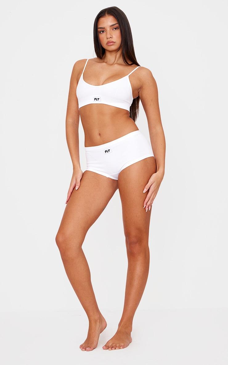 Hit refresh on your everyday essentials with these PrettyLittleThing white woven badge seamless briefs. Brought to you in a white hue woven material with a 'PrettyLittleThing' badge and a comfy seamless fit, what more could you need? Pair these white briefs with the matching bralette and wear under your outfit of the day for a seriously comfy combo. Length approx 23cm/9inch (Based on a sample size S) Model wears size SModel Height - 5ft 8inchp]:!mb-0inch>Category: Lingerie & NightwearProduct type: PantiesColor: WhiteMaterial: Contour Rib